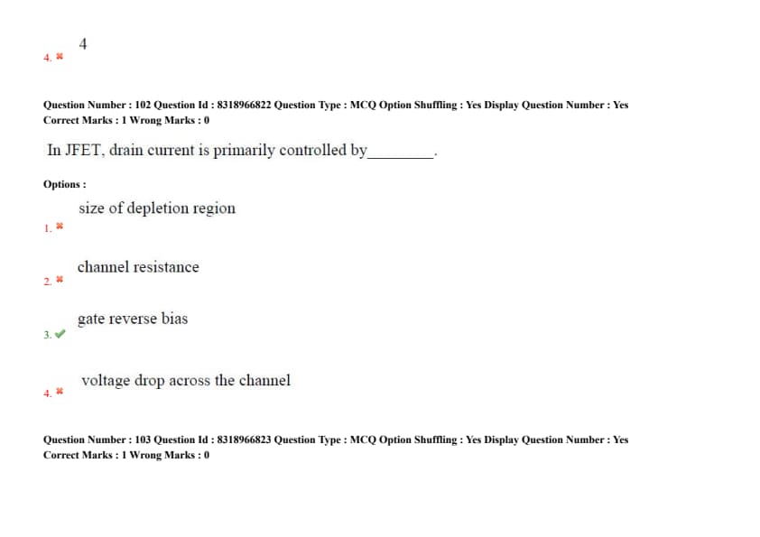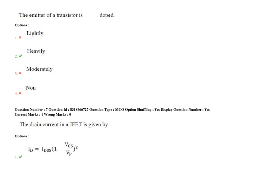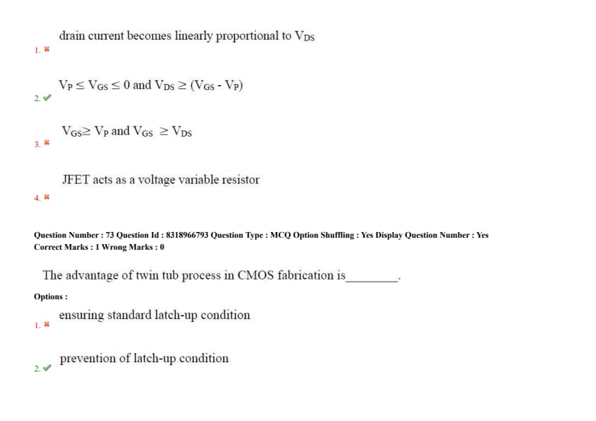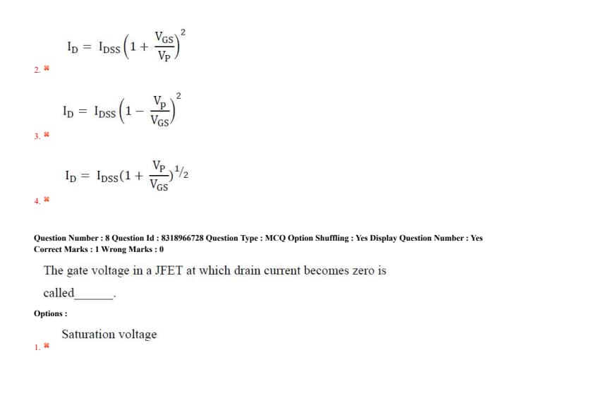- (4) \(I_D = I_{DSS} \left(1 + \frac{V_P}{V_{GS}} \right)^{1/2}\)