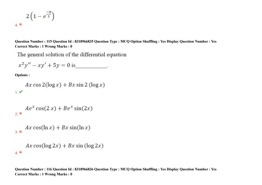 - (4) \(Ax \cos(\log 2x) + Bx \sin(\log 2x)\)