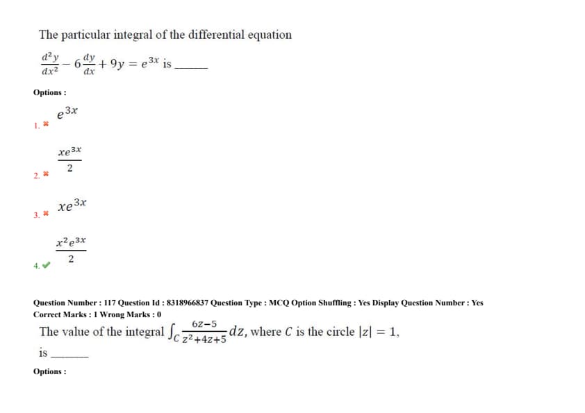 - (4) \(\frac{x^2 e^{3x}}{2}\)