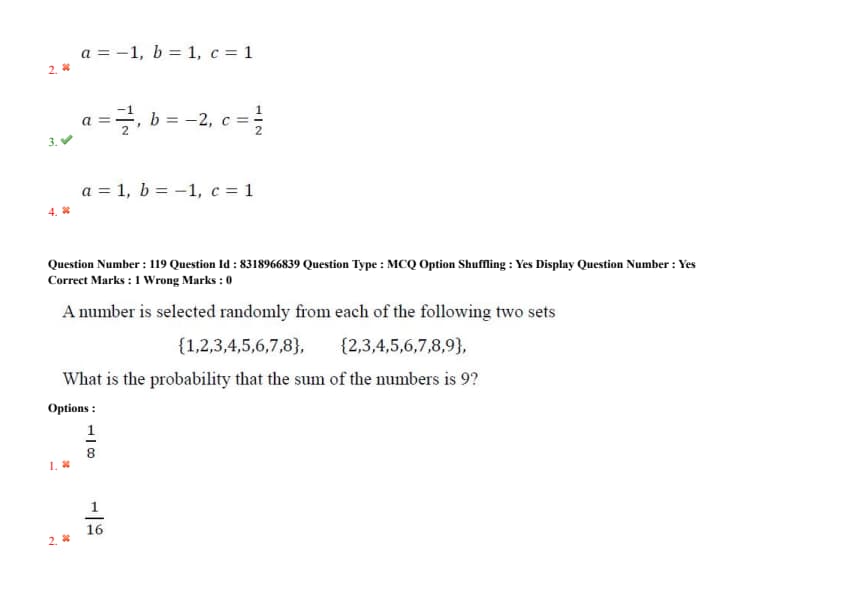 - (3) \(a = \frac{1}{2}, b = -2, c = 1\)