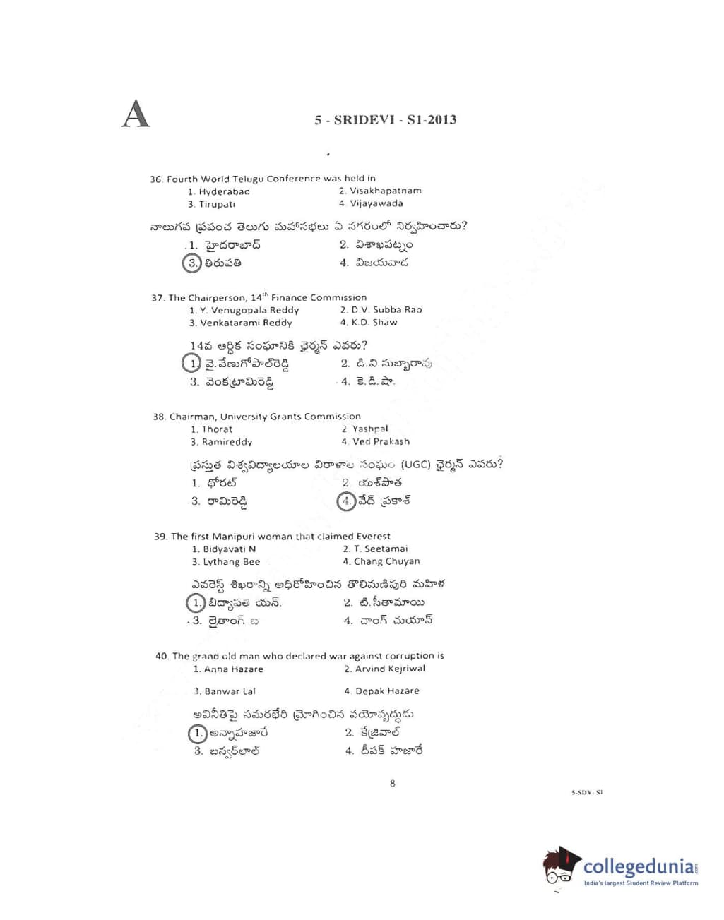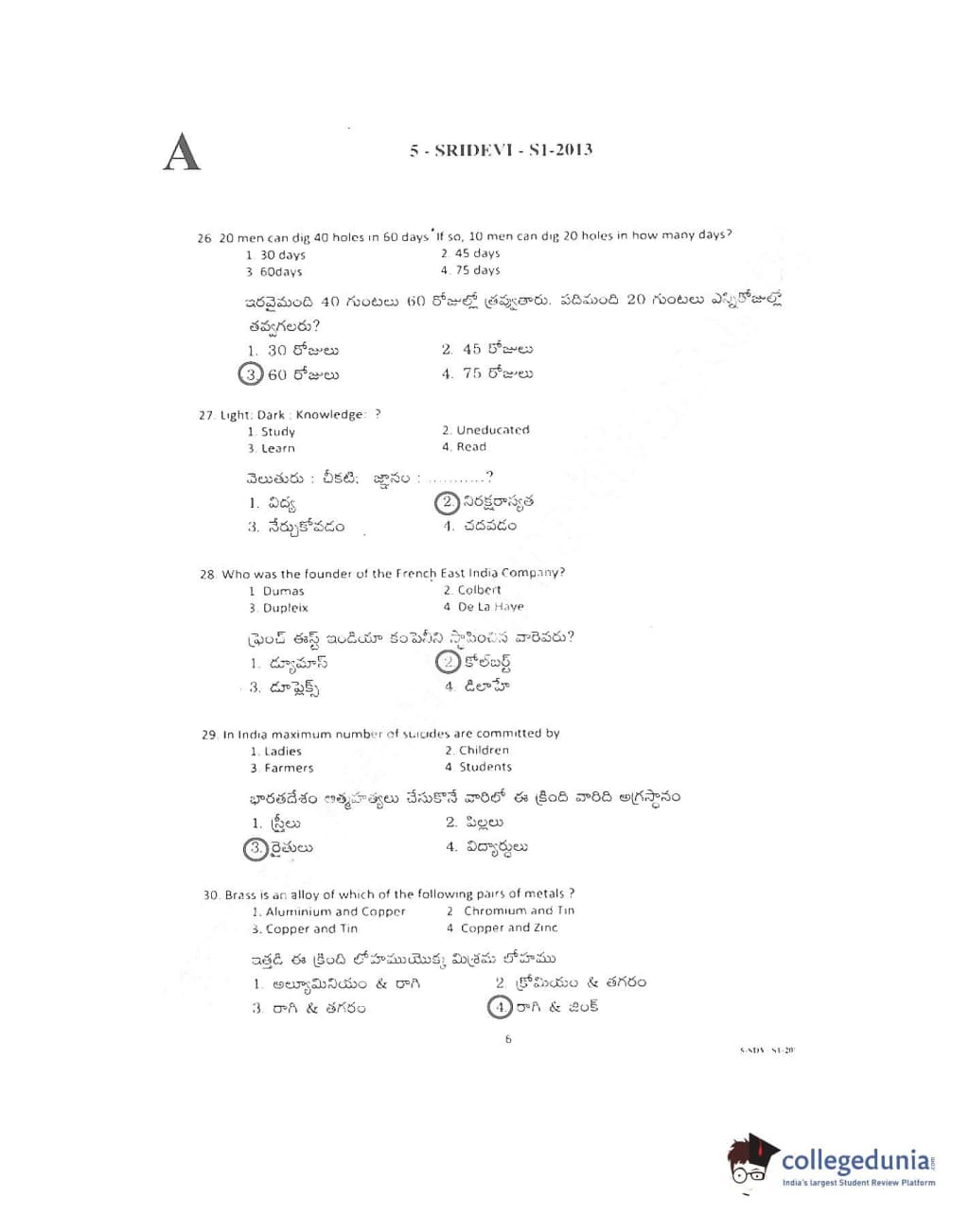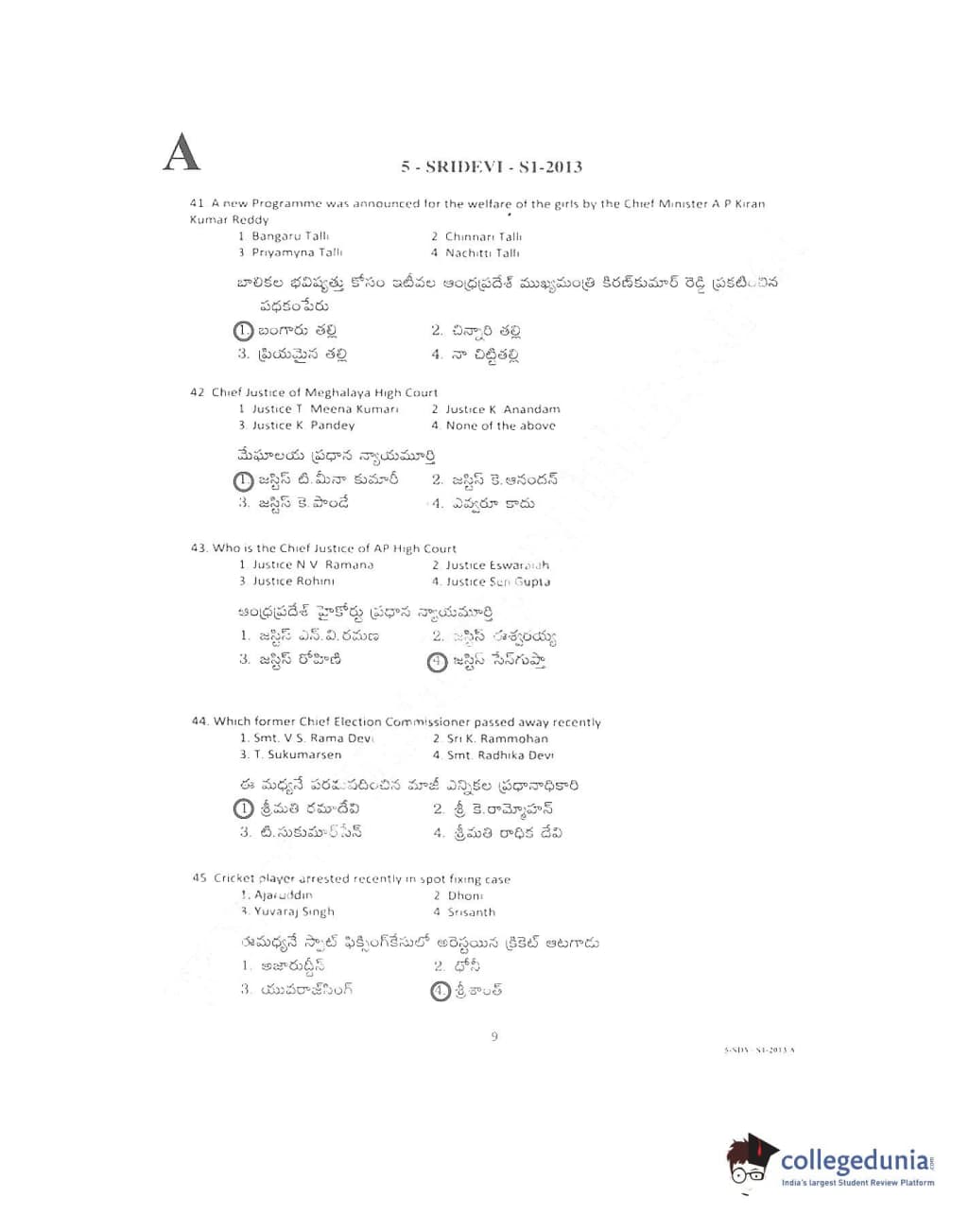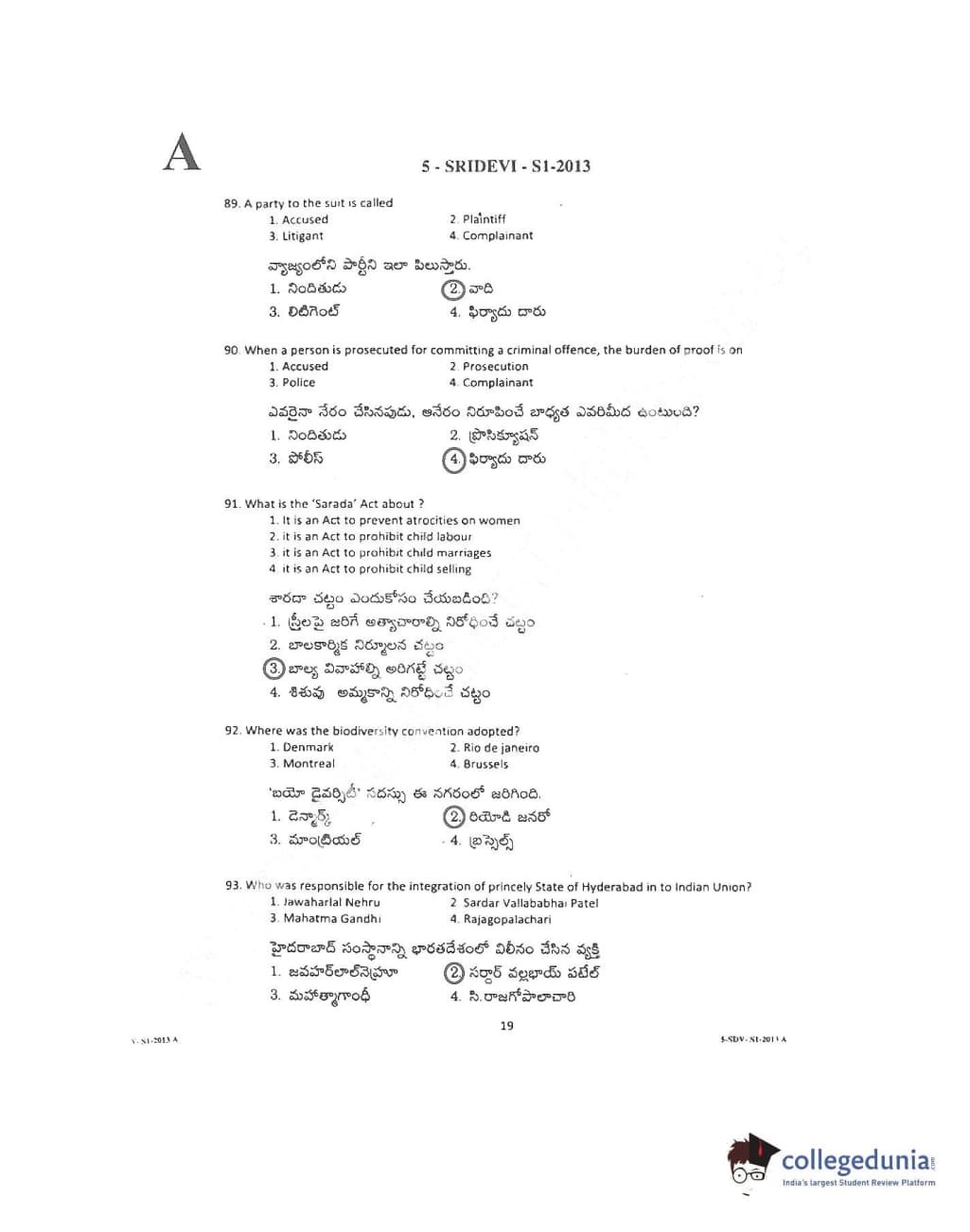 TS LAWCET 2013 Sridevi S1 Question Paper with Answer Key PDFs in English