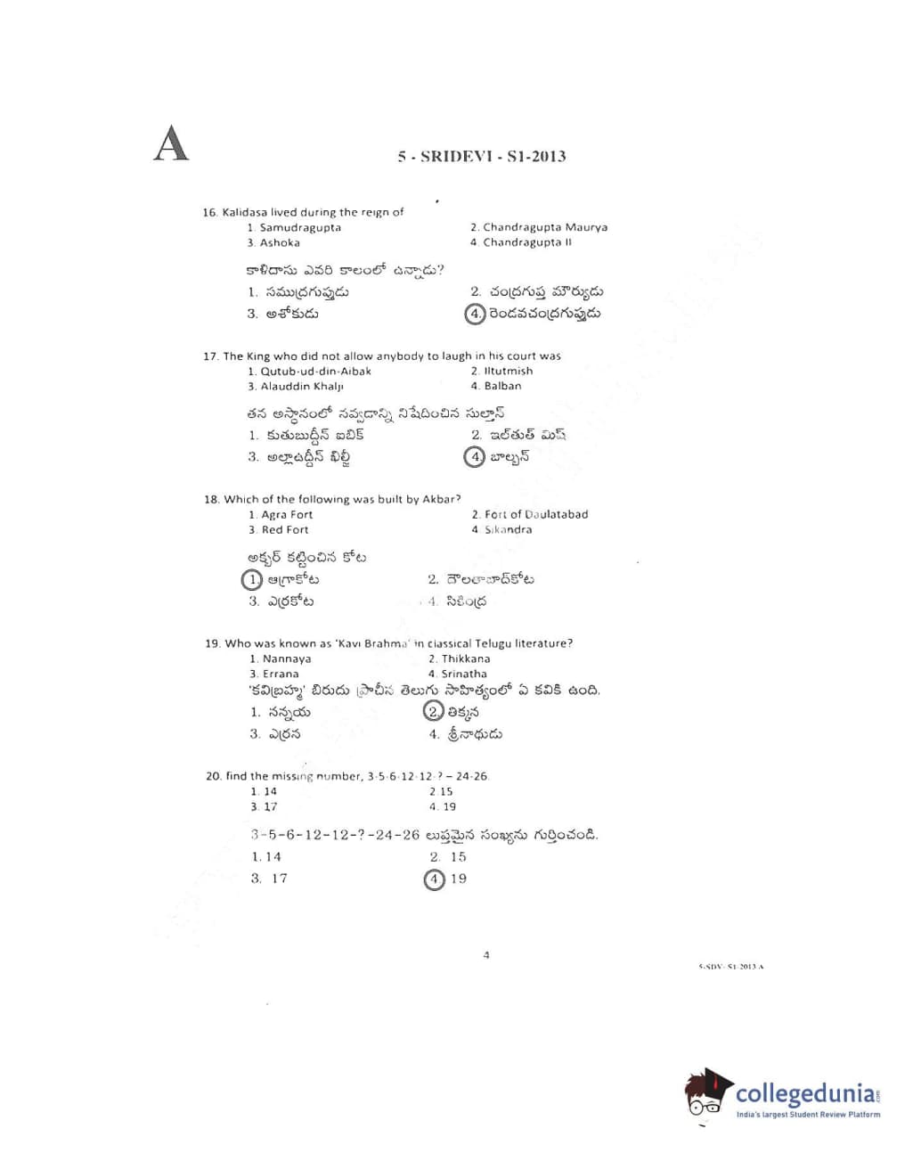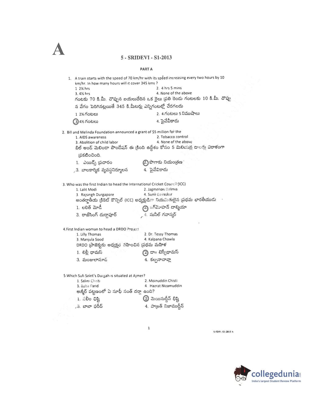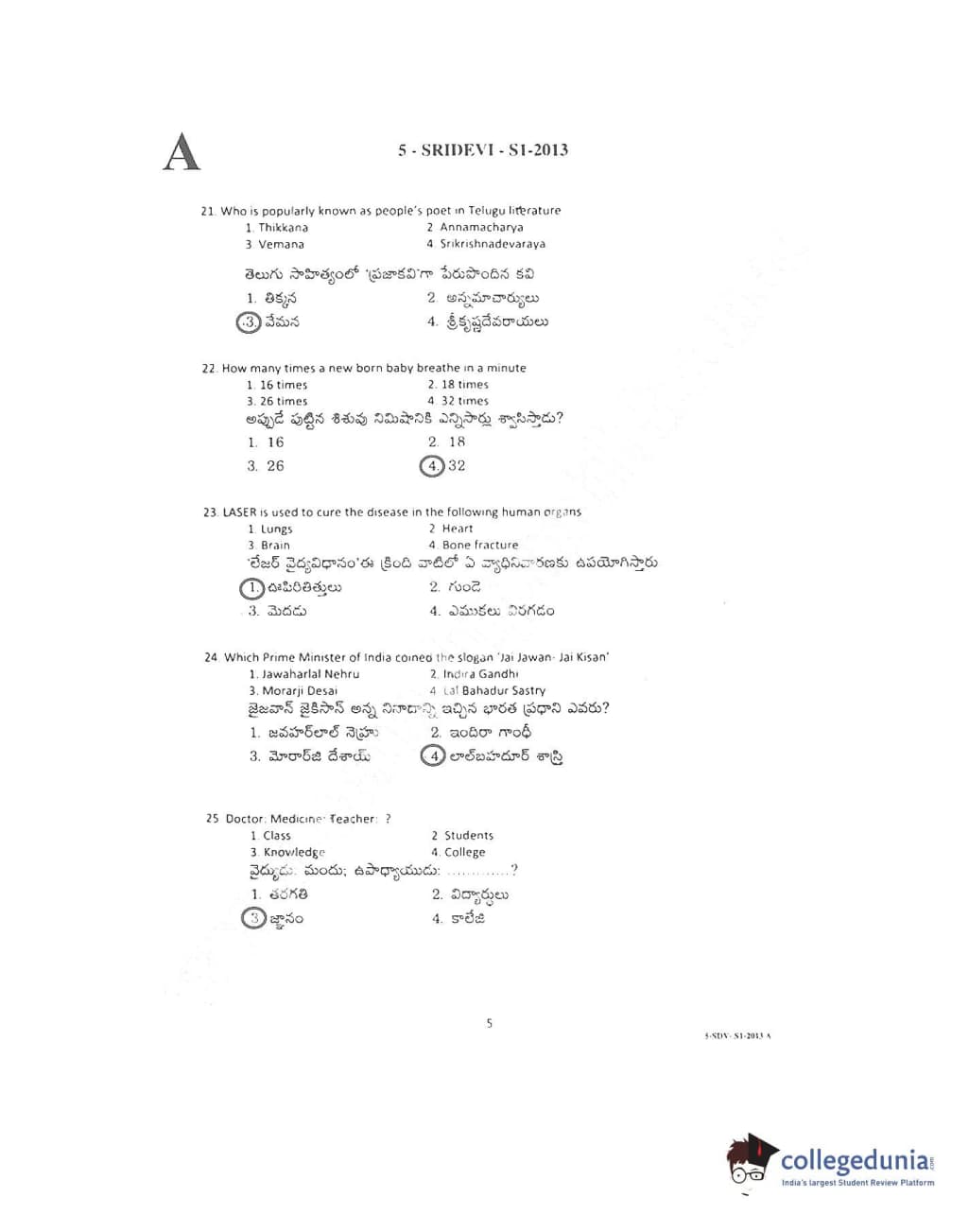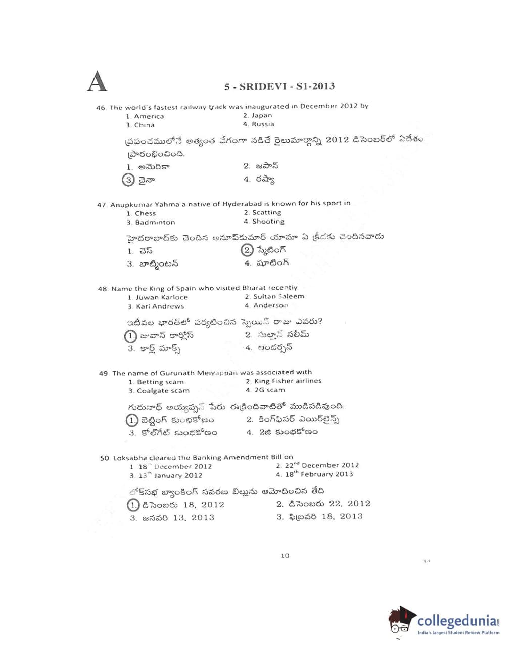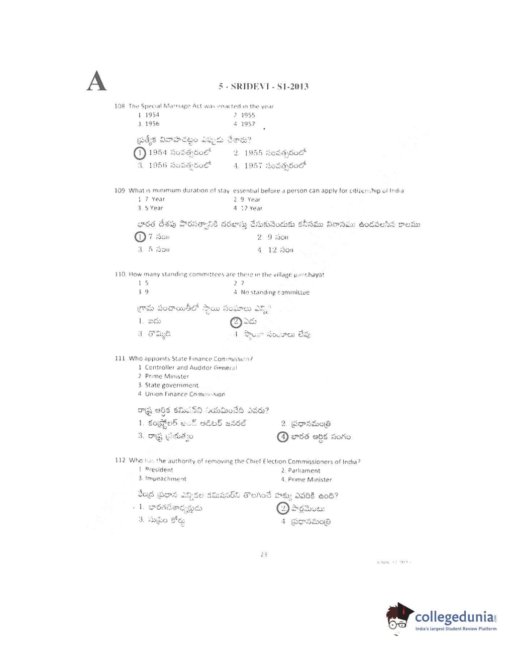TS LAWCET 2013 Sridevi S1 Question Paper PDF TS LAWCET 2013 Sridevi S1 Answer Key PDF