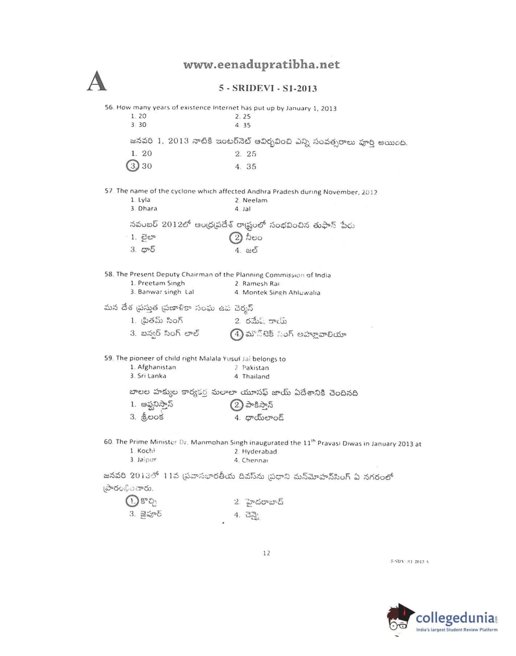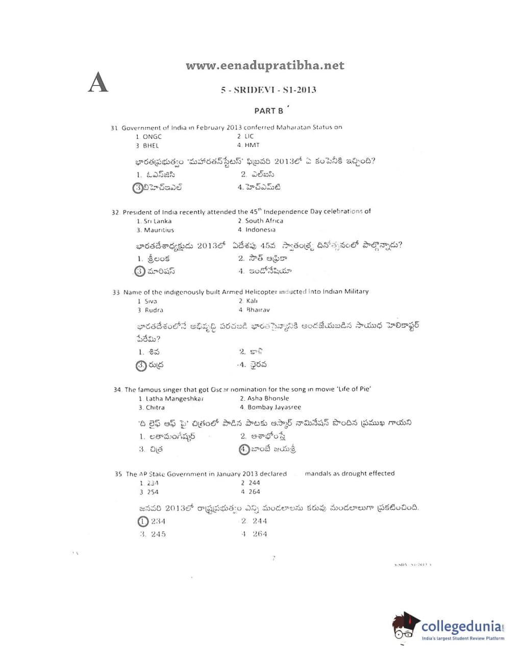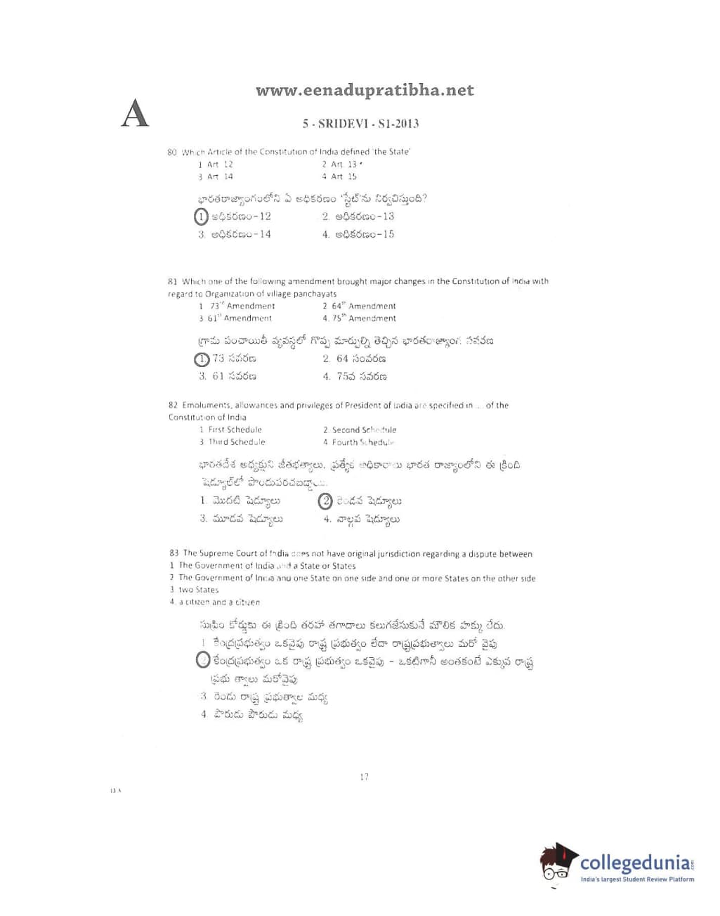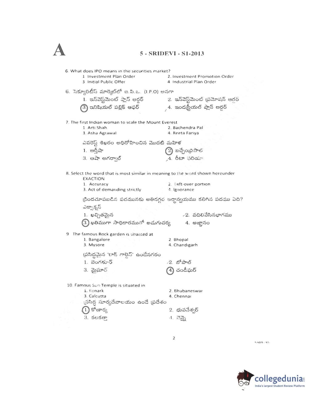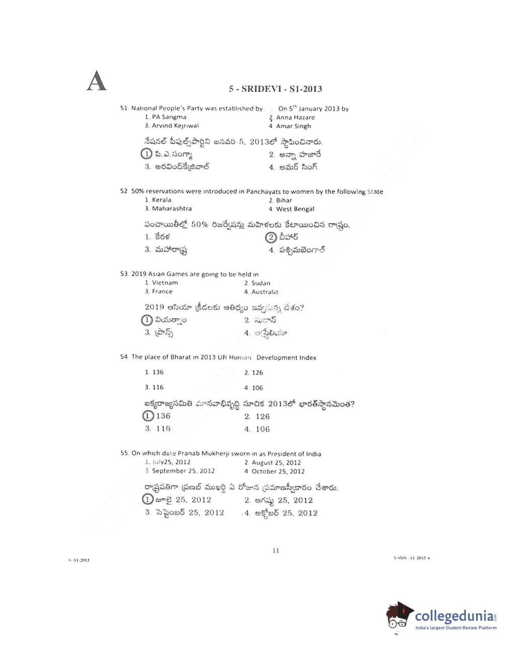 TS LAWCET 2013 Sridevi S1 Question Paper PDF TS LAWCET 2013 Sridevi S1 Answer Key PDF