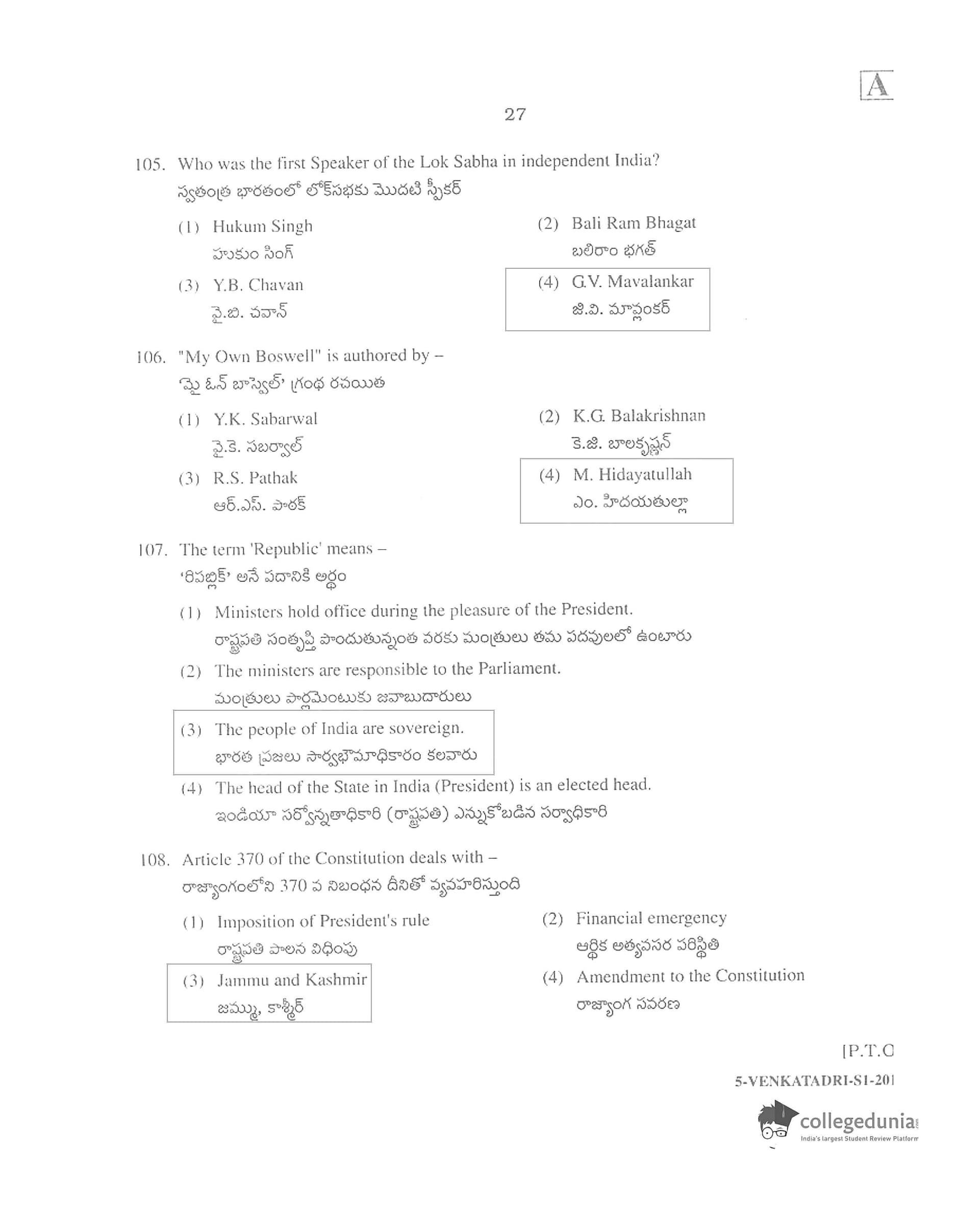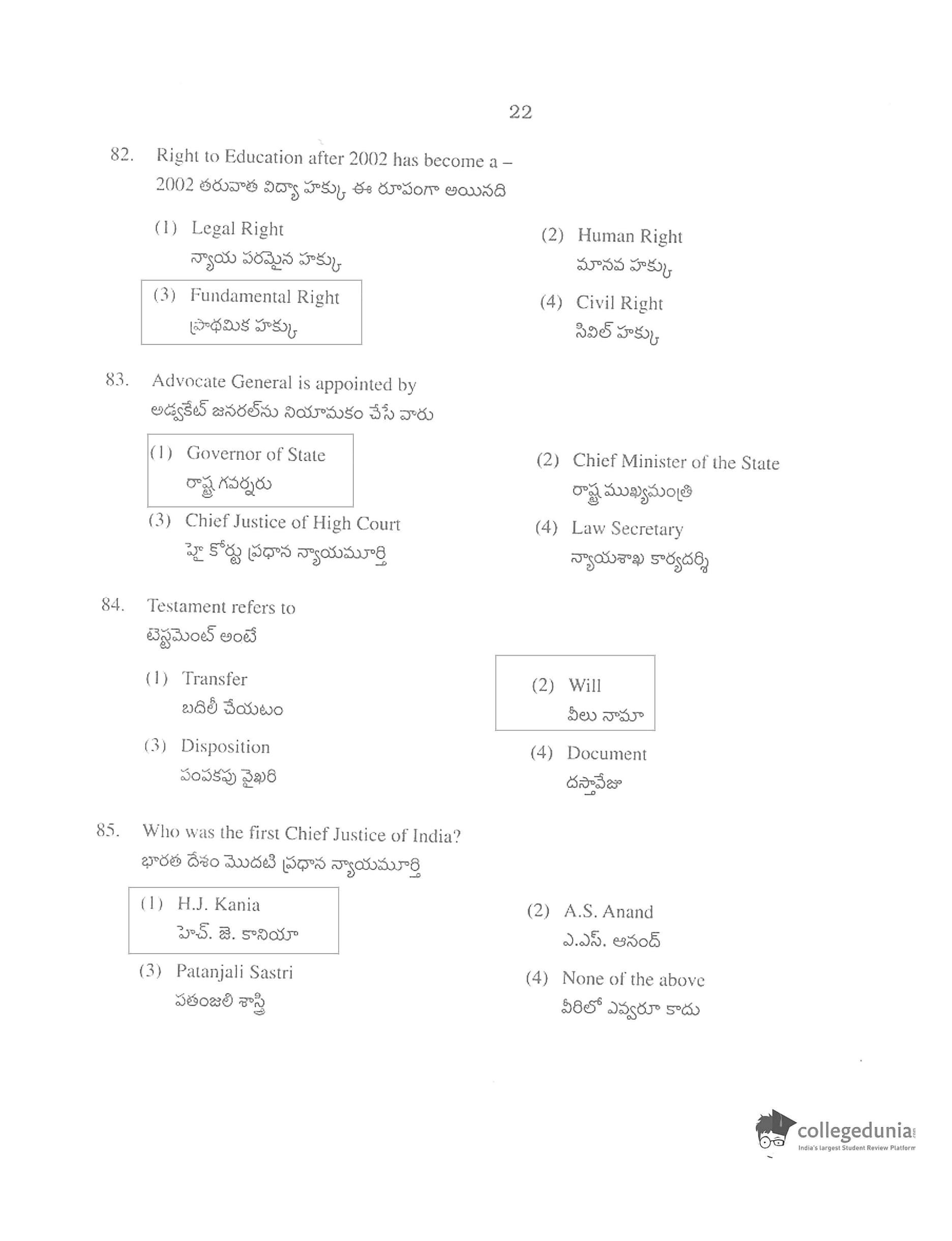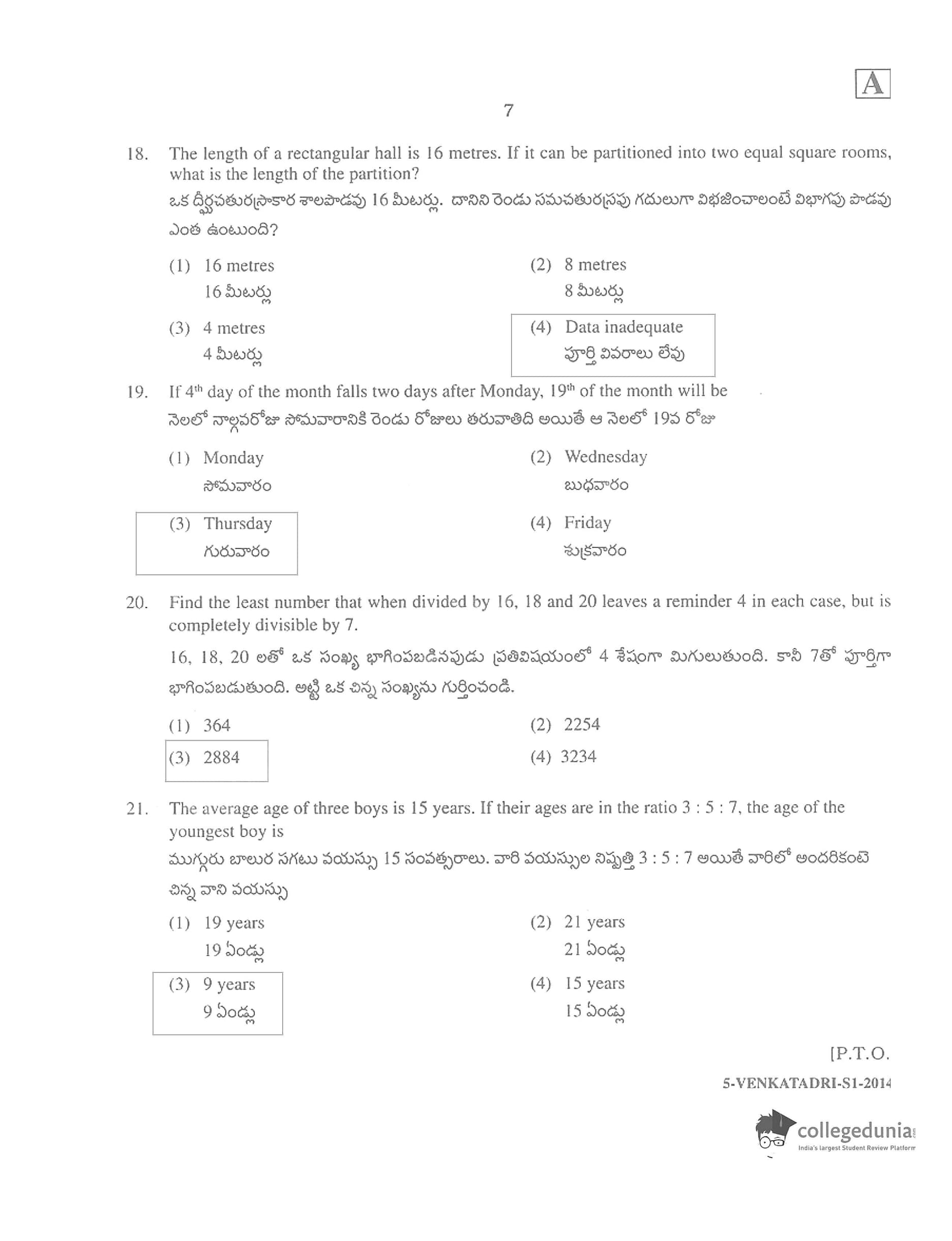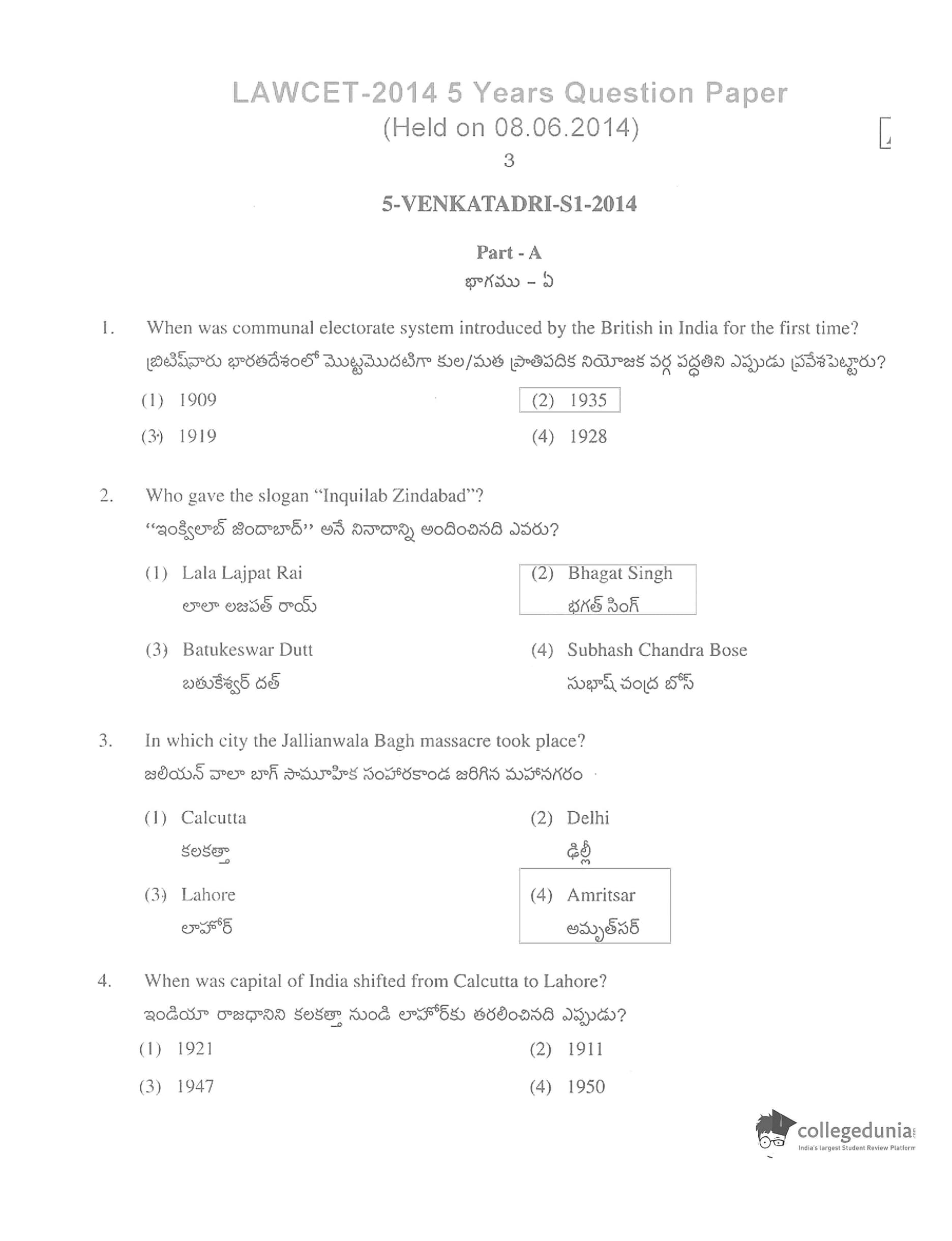 TS LAWCET 2014 Venkatadri S2 Question Paper PDF TS LAWCET 2014 Venkatadri S2 Answer Key PDF