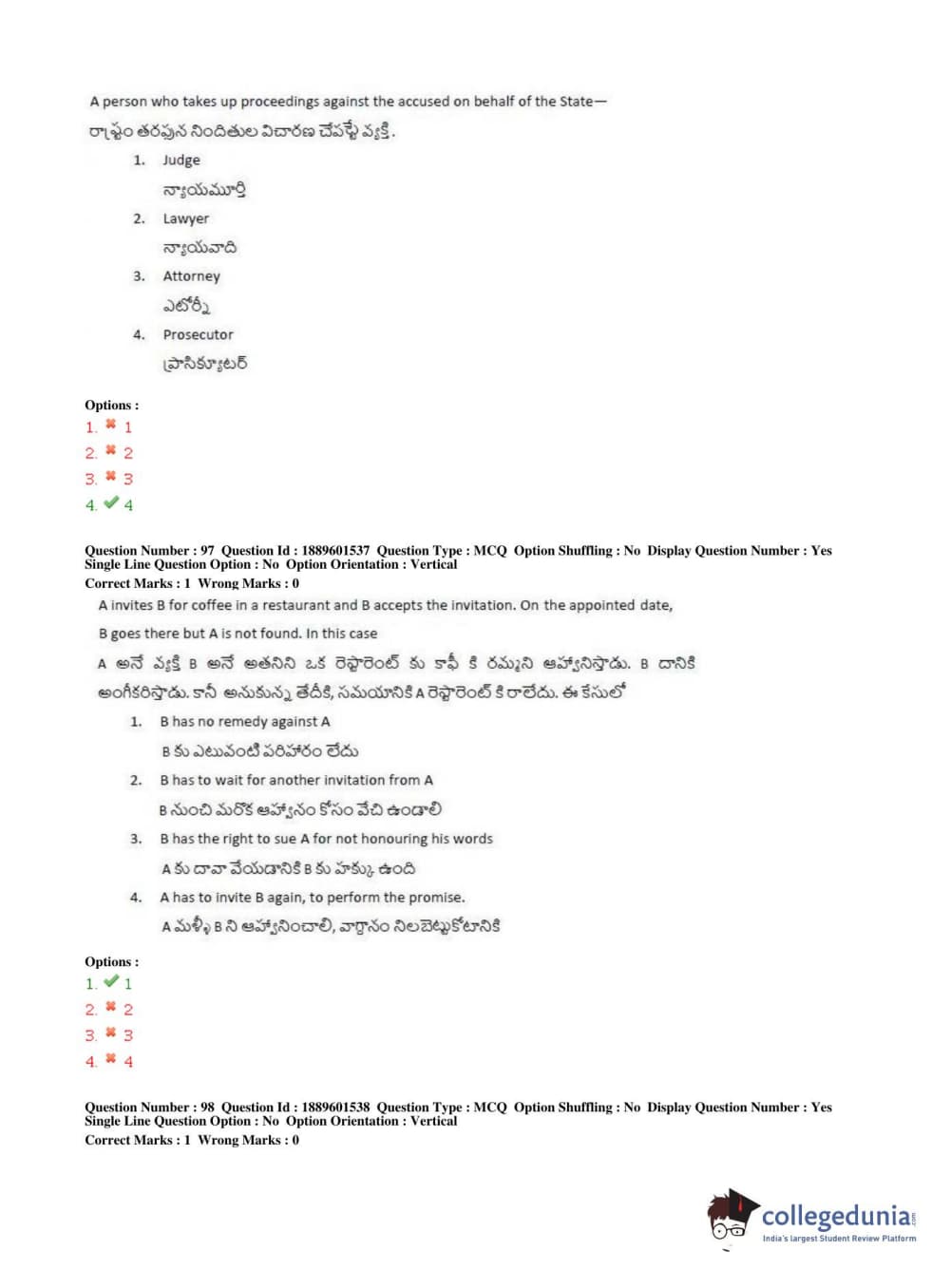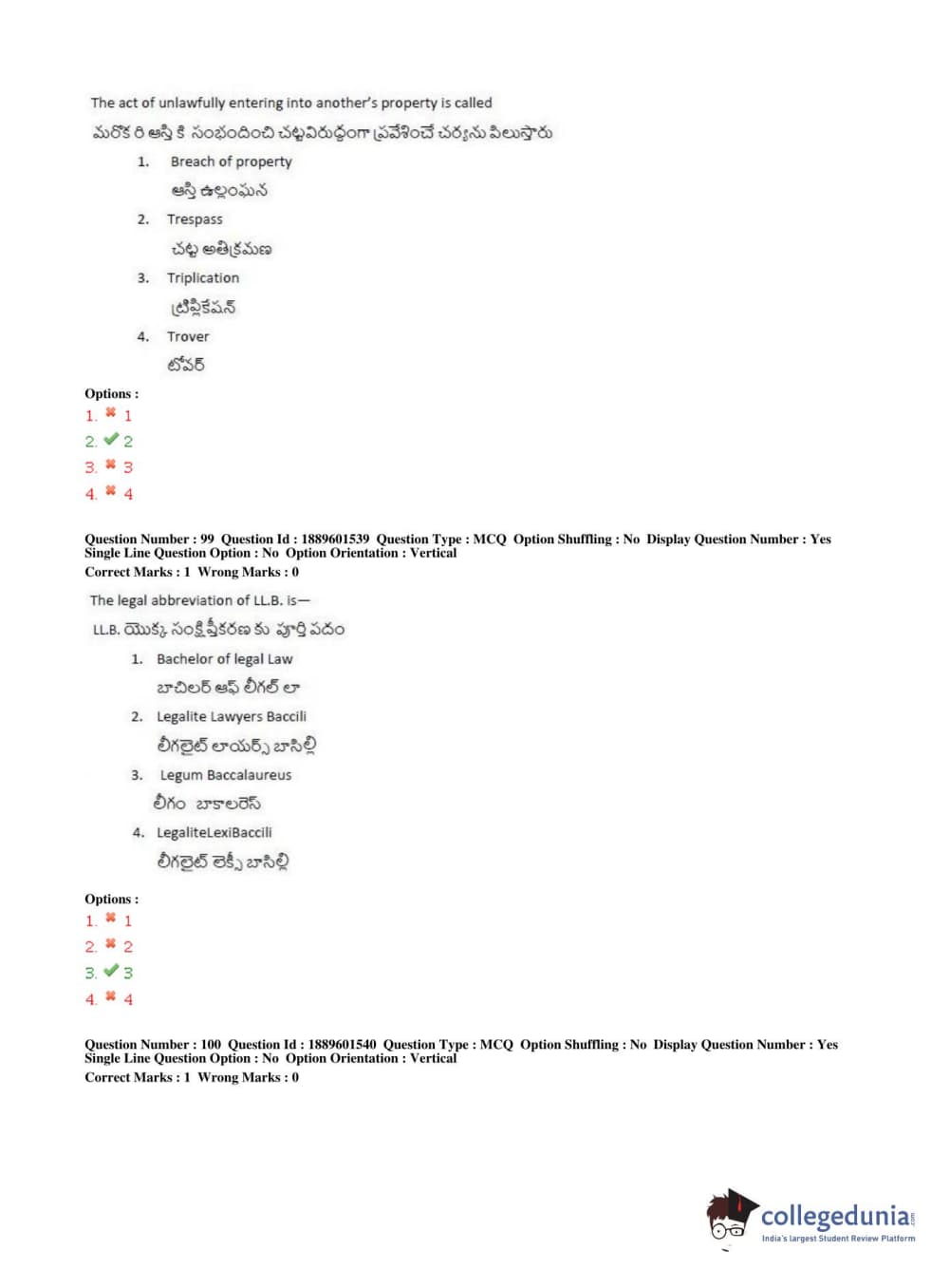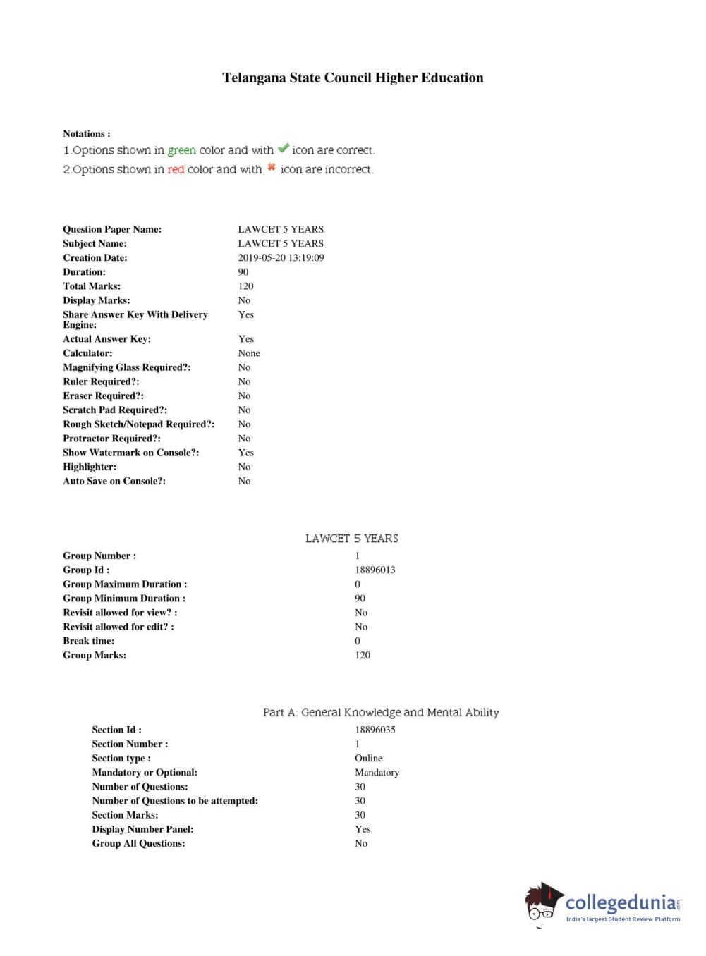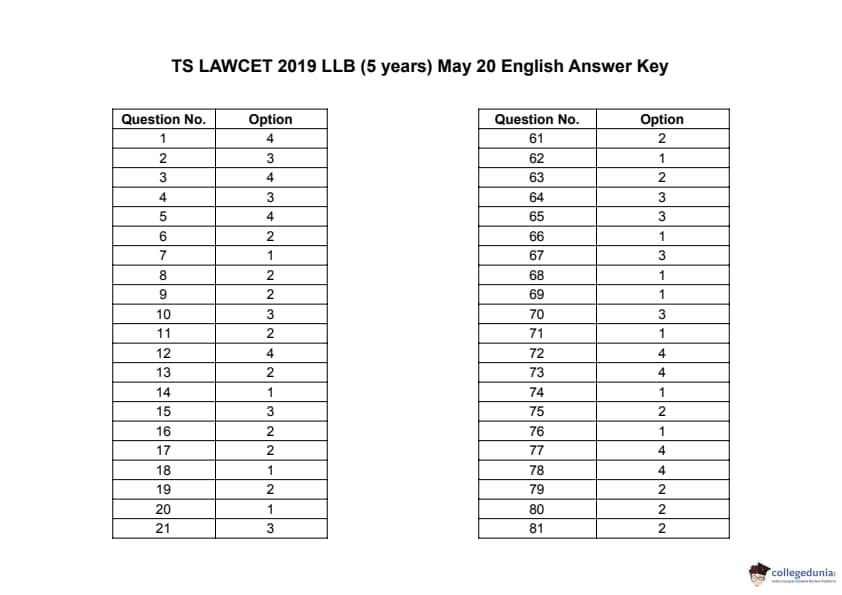TS LAWCET 2019 LLB (5 years) Question Paper PDF TS LAWCET 2019 LLB (5 years) Answer Key PDF