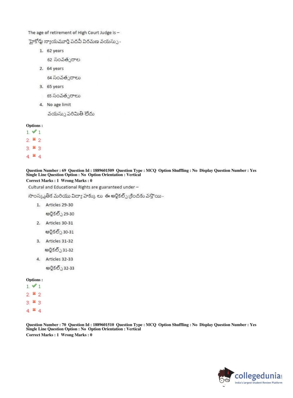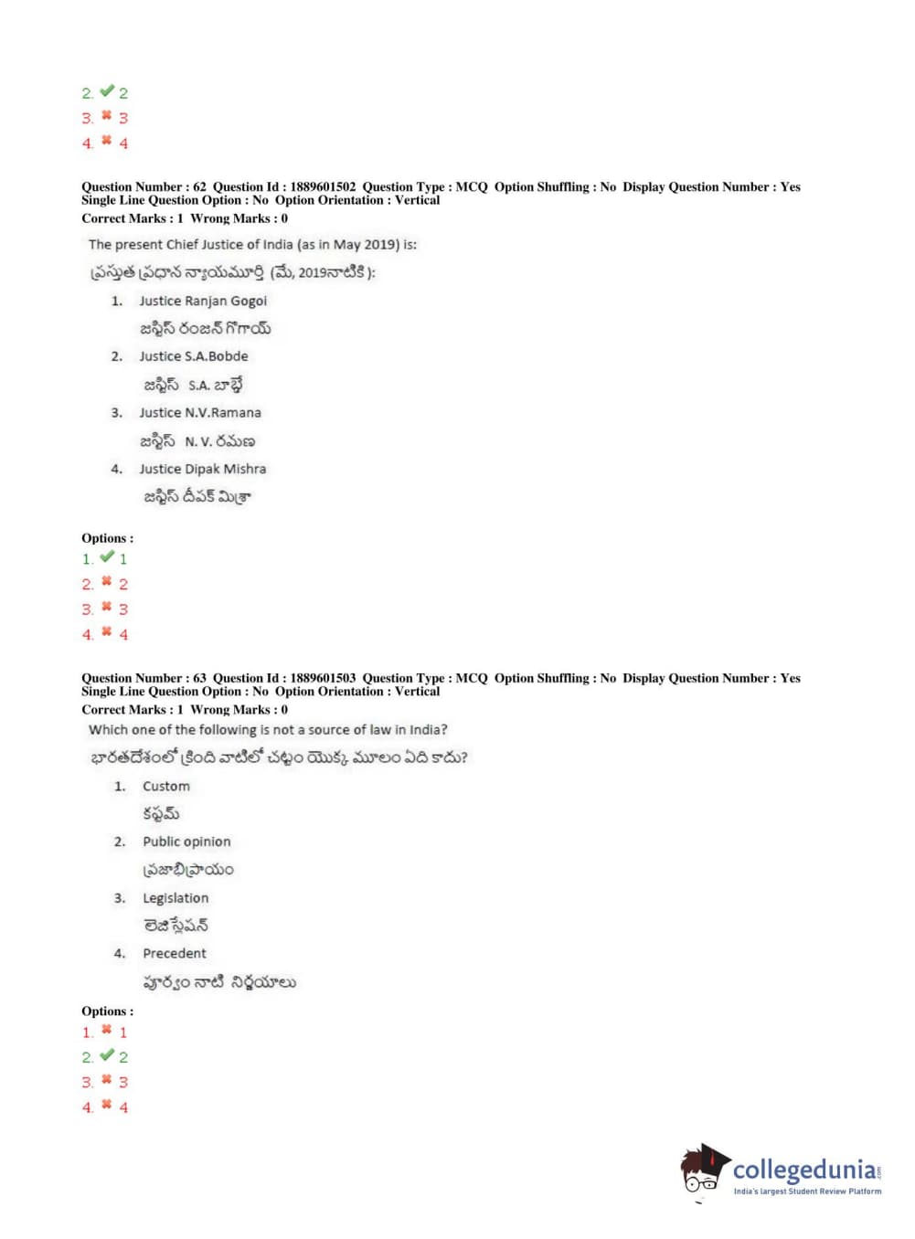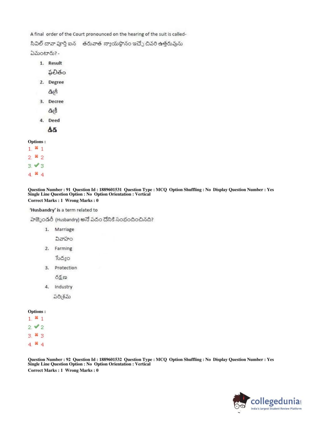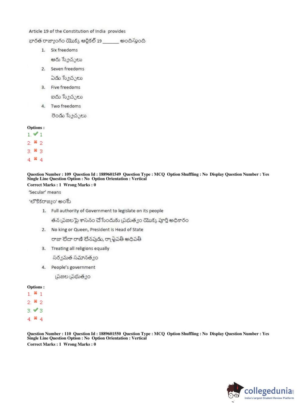 TS LAWCET 2019 LLB (5 years) Question Paper PDF TS LAWCET 2019 LLB (5 years) Answer Key PDF