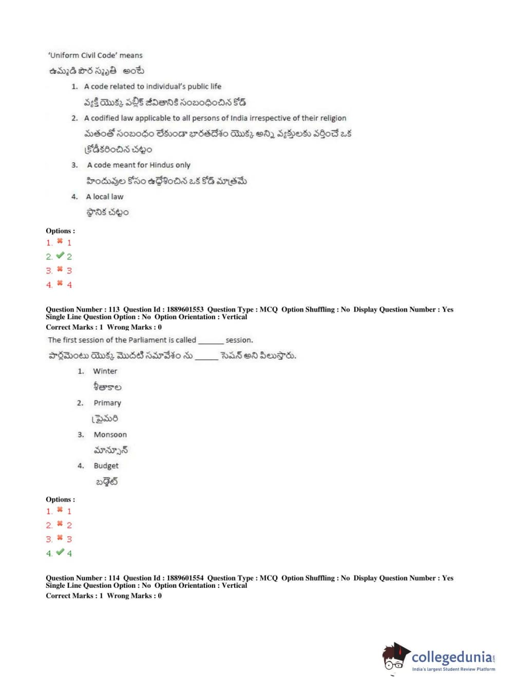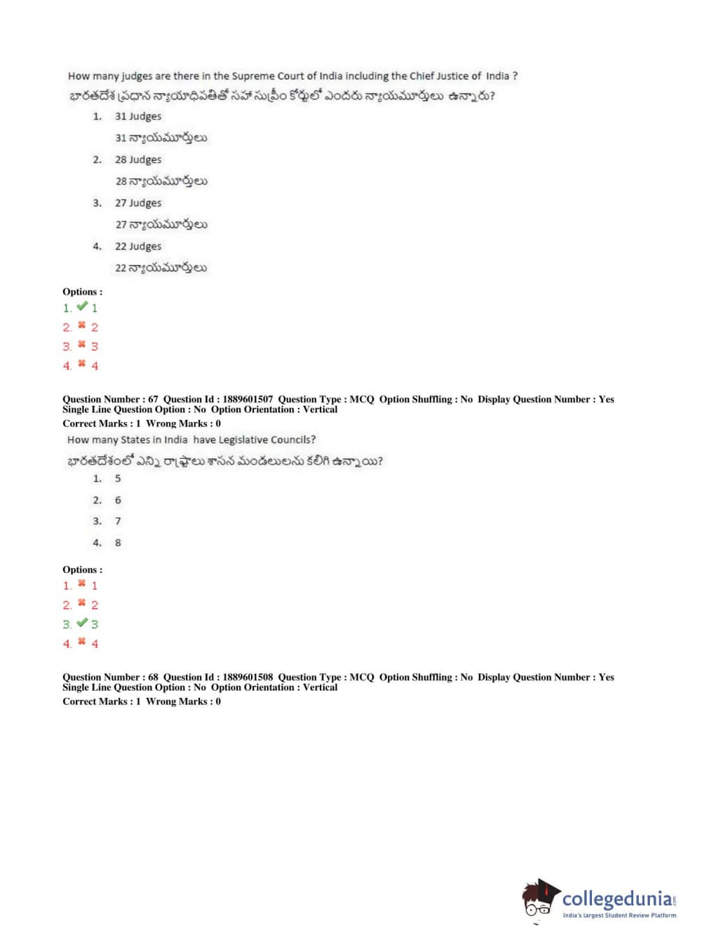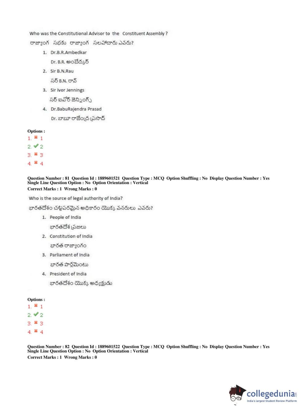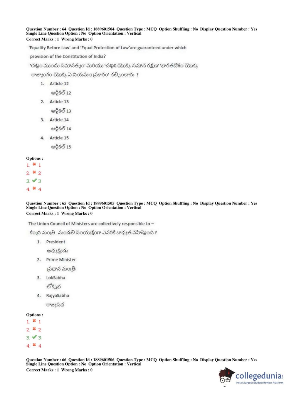 TS LAWCET 2019 LLB (5 years) Question Paper PDF TS LAWCET 2019 LLB (5 years) Answer Key PDF