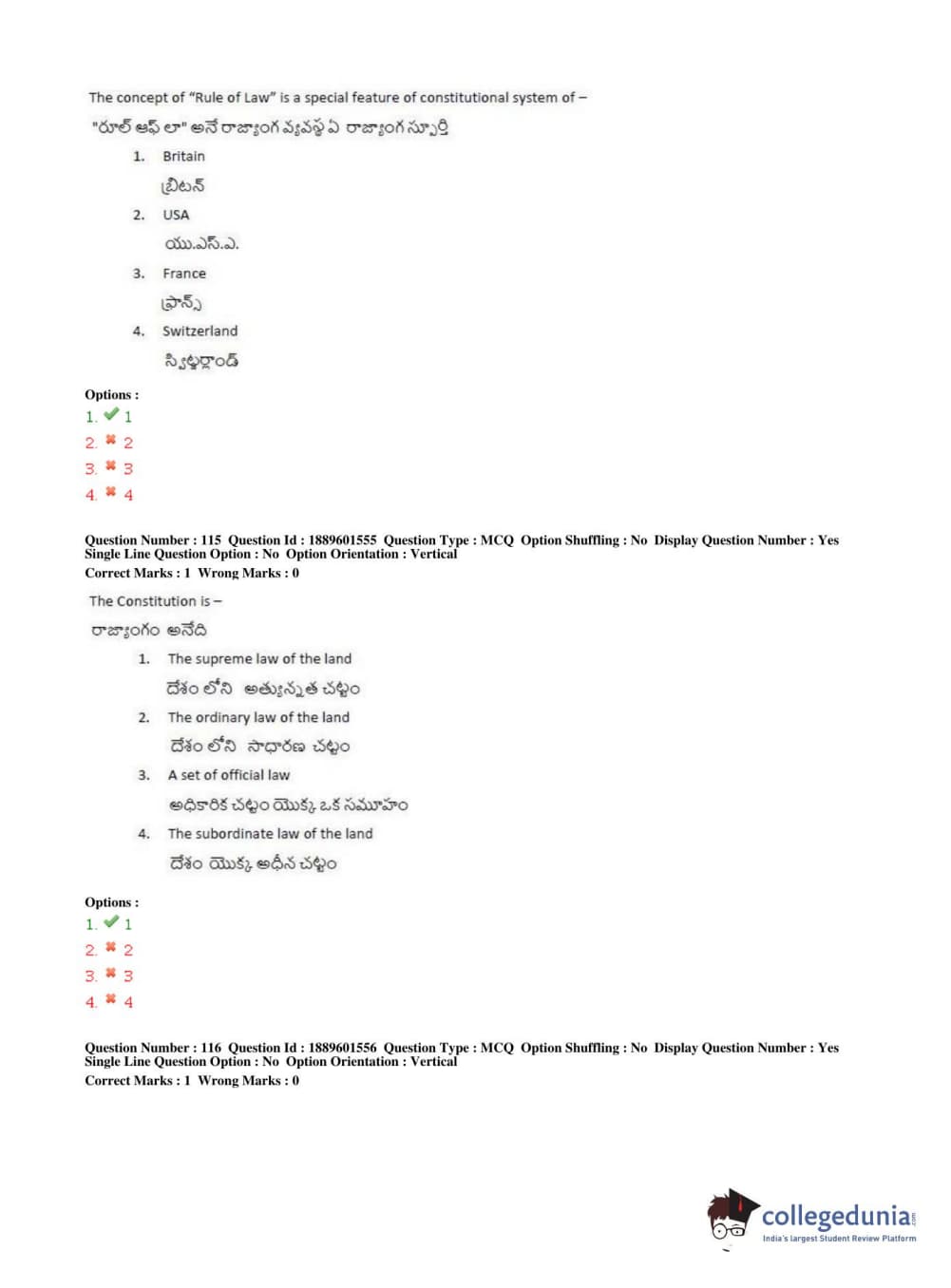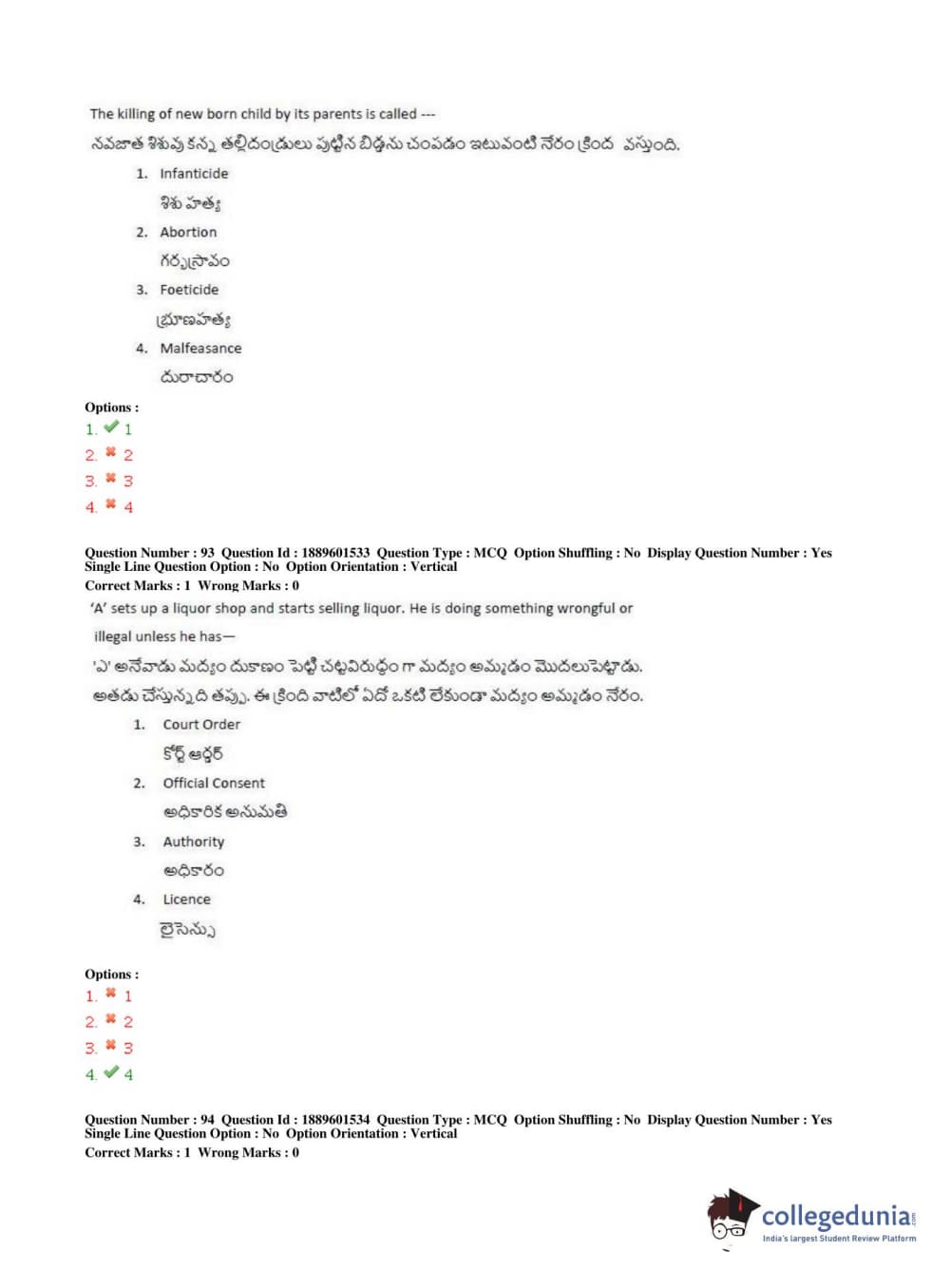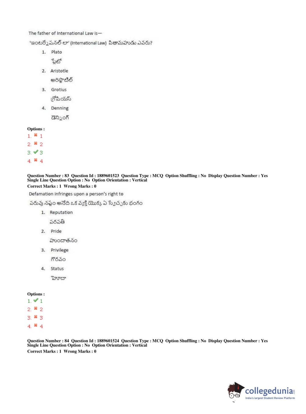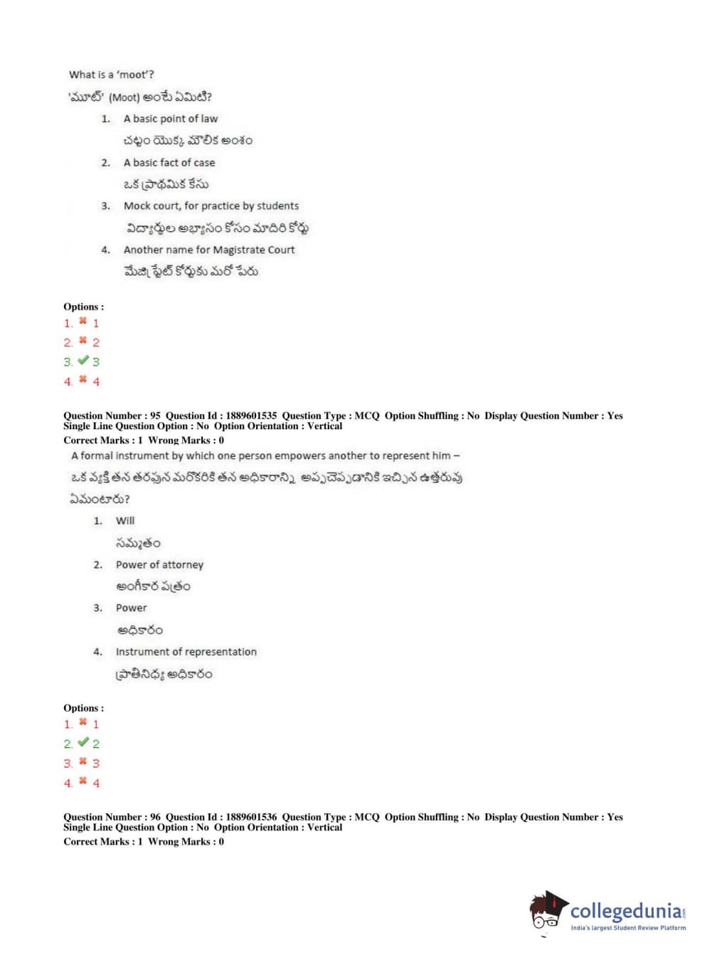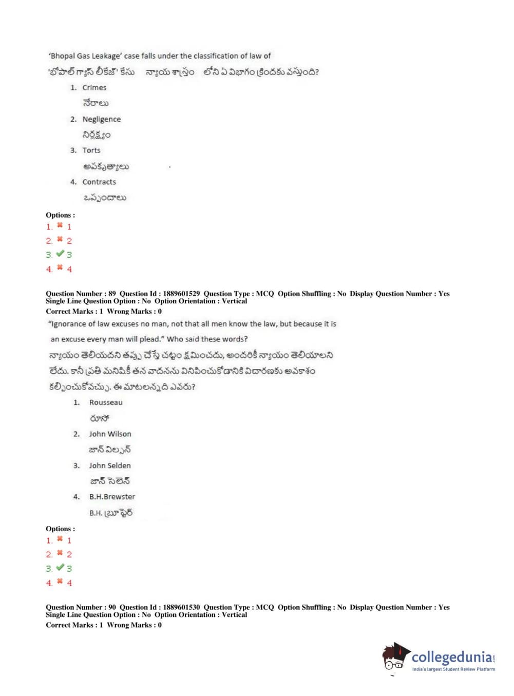 Similar Law Exam Question Papers:
