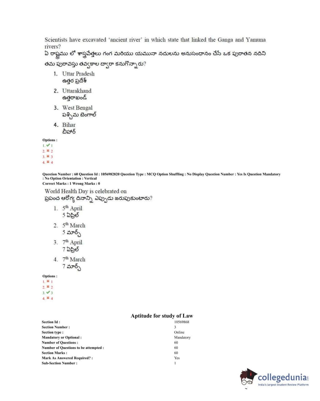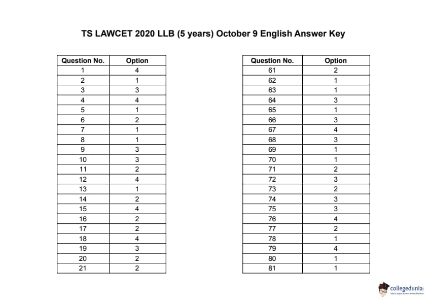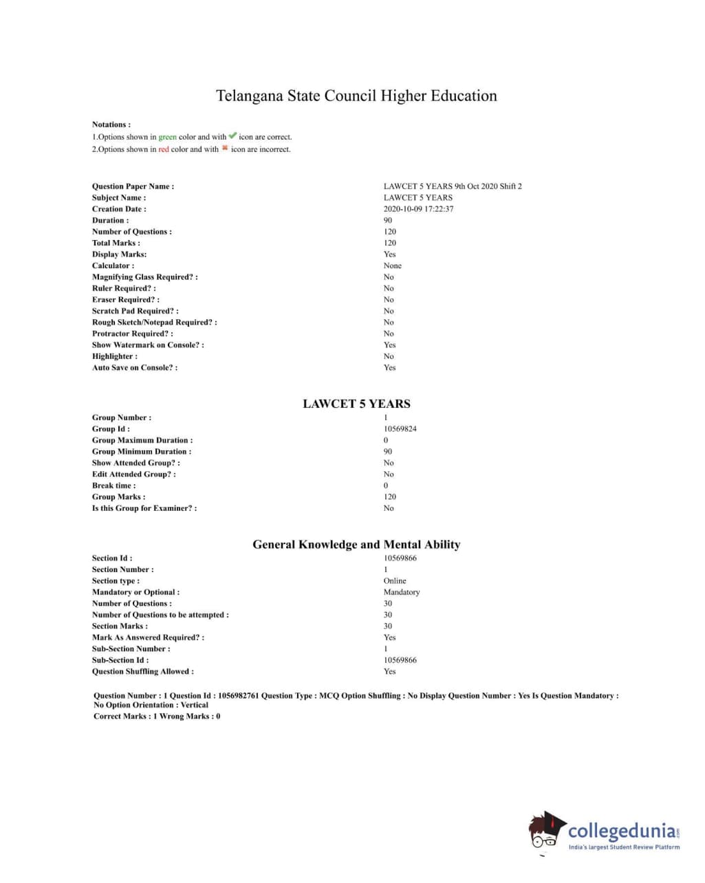 | TS LAWCET 2020 LLB (5 years) Question Paper PDF | TS LAWCET 2020 LLB (5 years) Answer Key PDF |