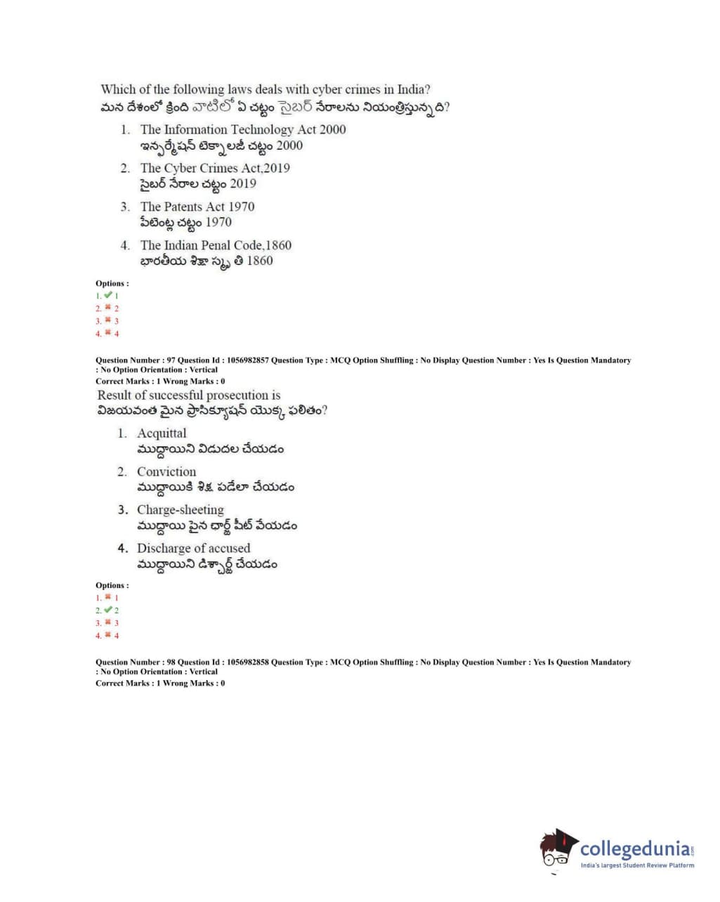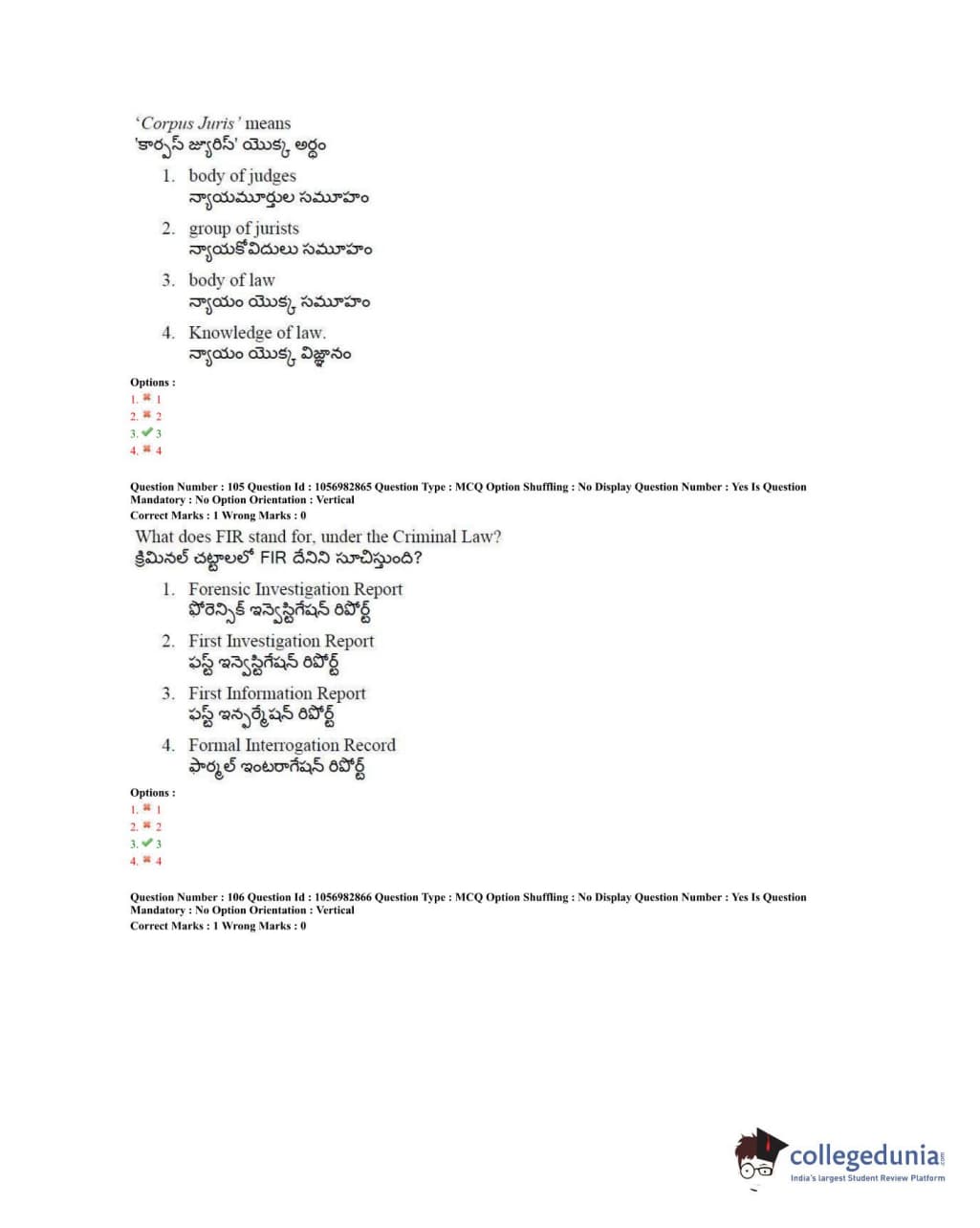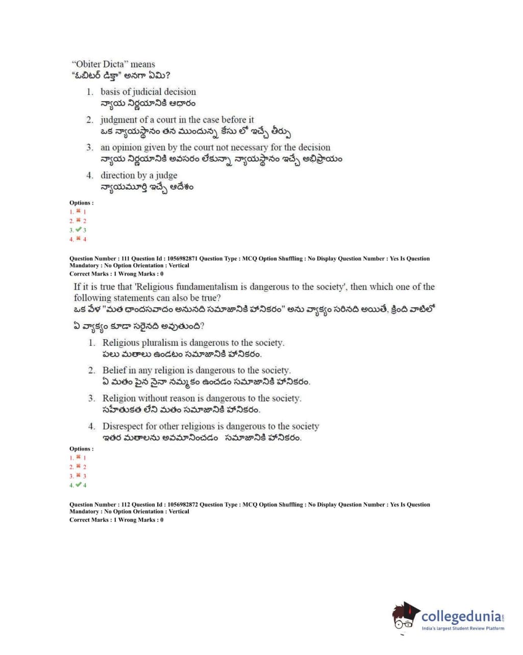 | TS LAWCET 2020 LLB (5 years) Question Paper PDF | TS LAWCET 2020 LLB (5 years) Answer Key PDF |