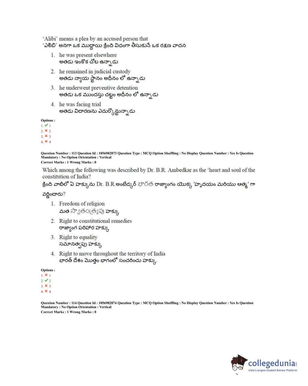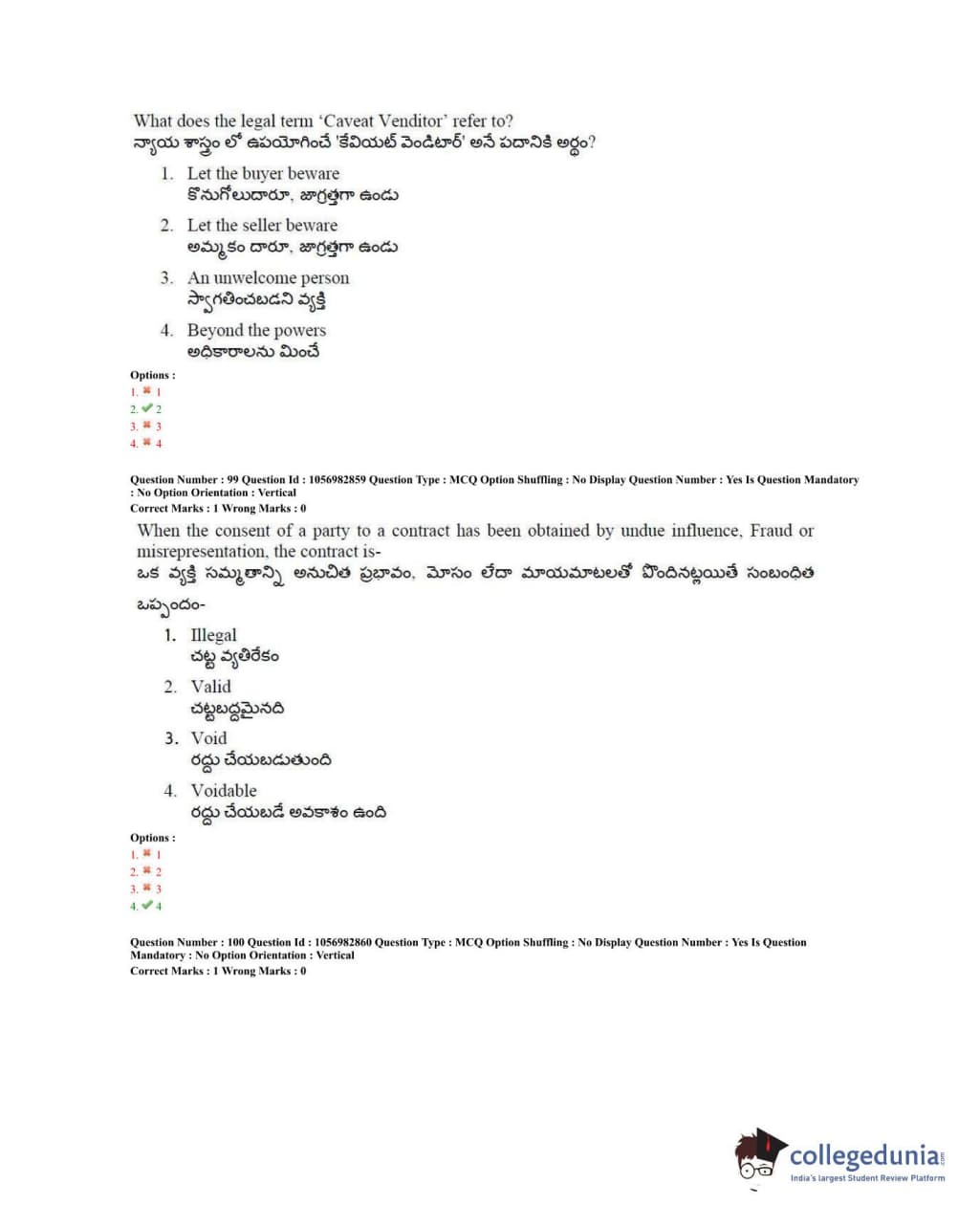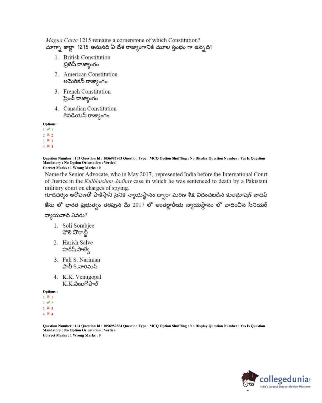 TS LAWCET 2020 LLB (5 years) Question Paper with Answer Key PDFs