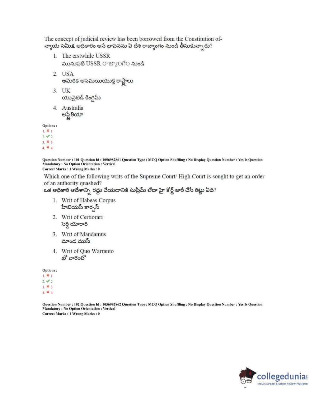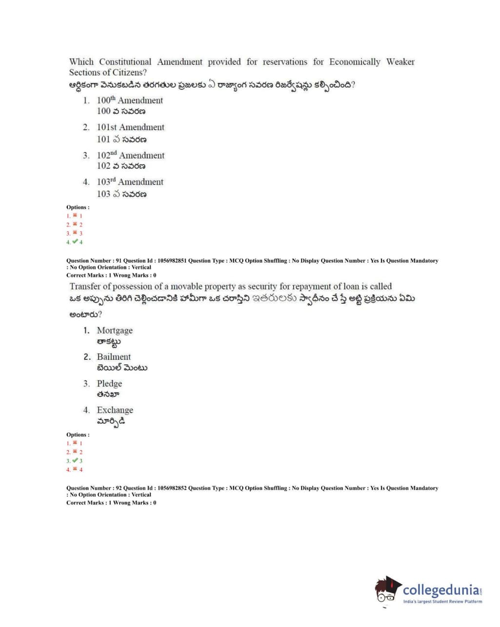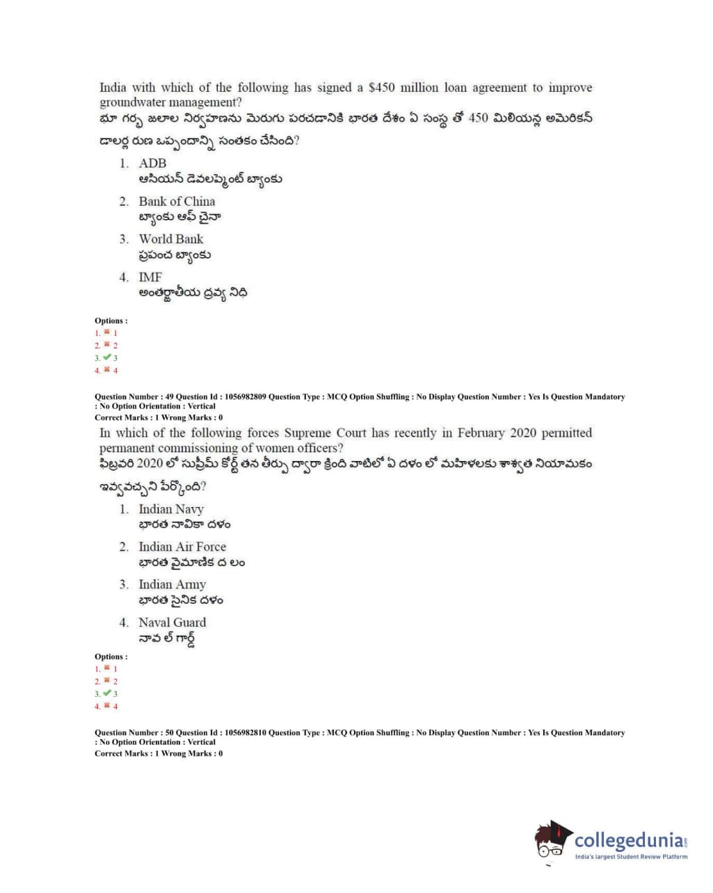 TS LAWCET 2020 LLB (5 years) Question Paper with Answer Key PDFs