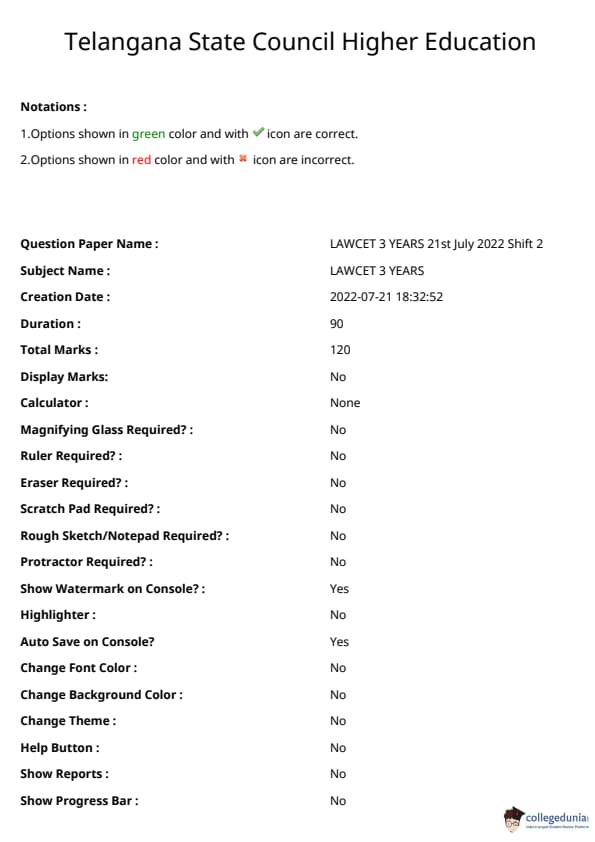 TS LAWCET 2022 LLB (3 years) Question paper with answer key pdf conducted on July 21, 2022 in Shift 2 is available for download. The exam was successfully organized by Osmania University, Hyderabad. The question paper comprised a total of 120 questions.