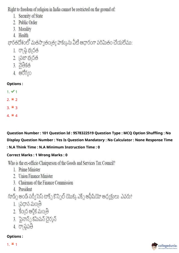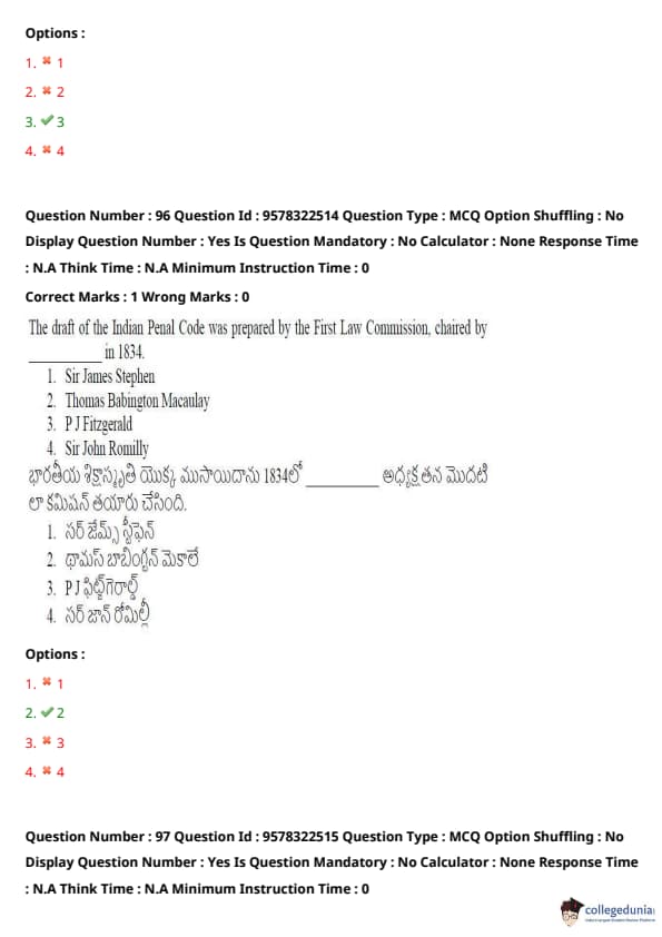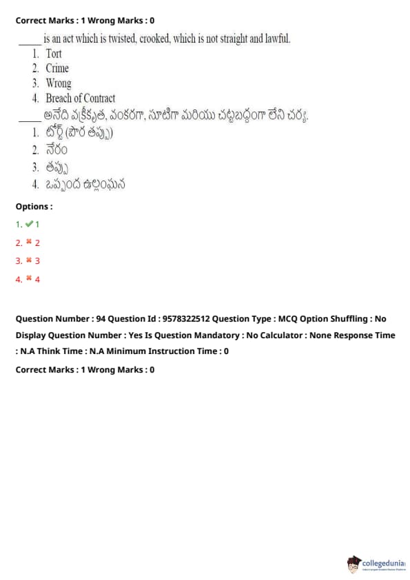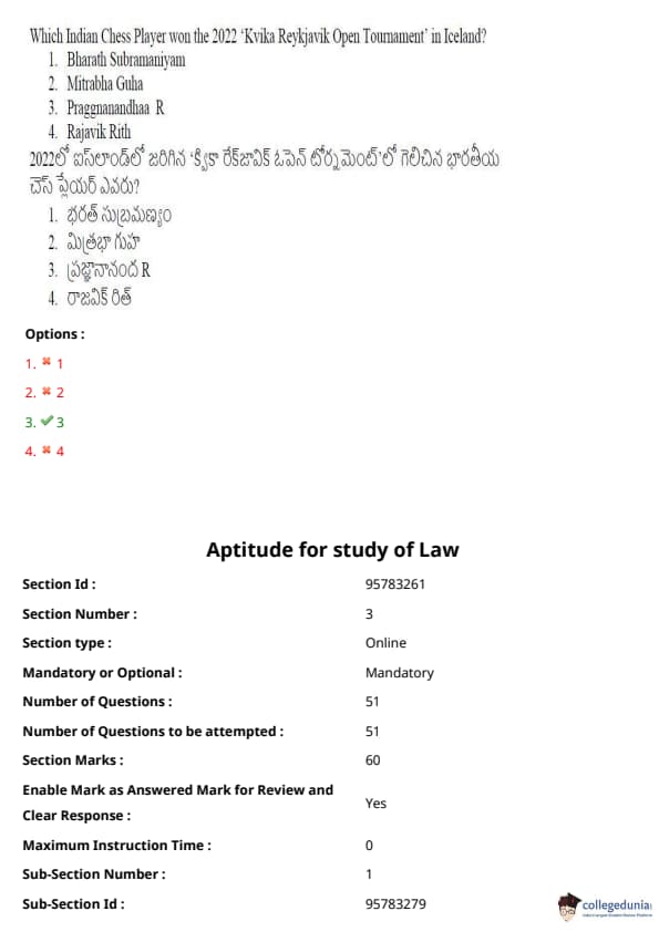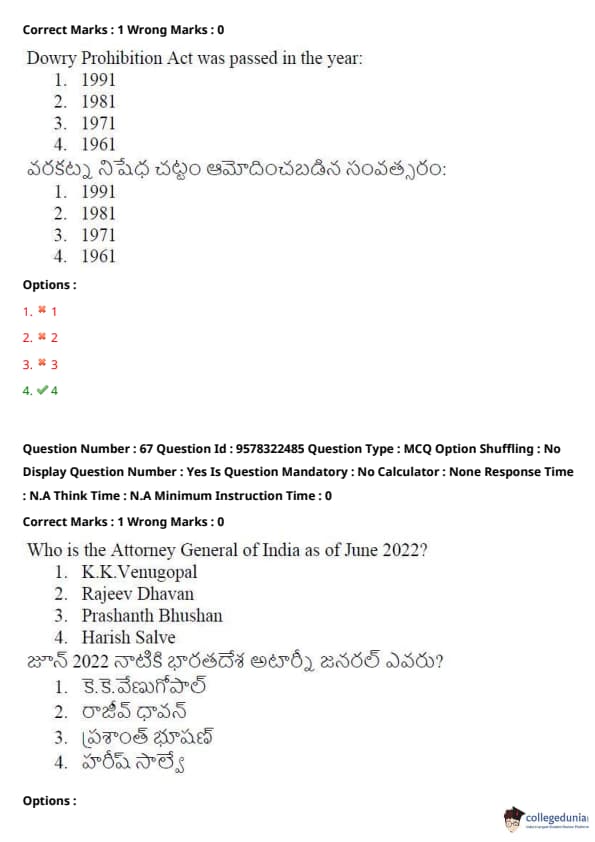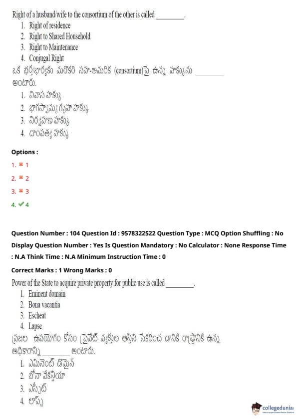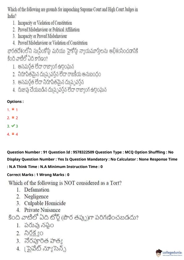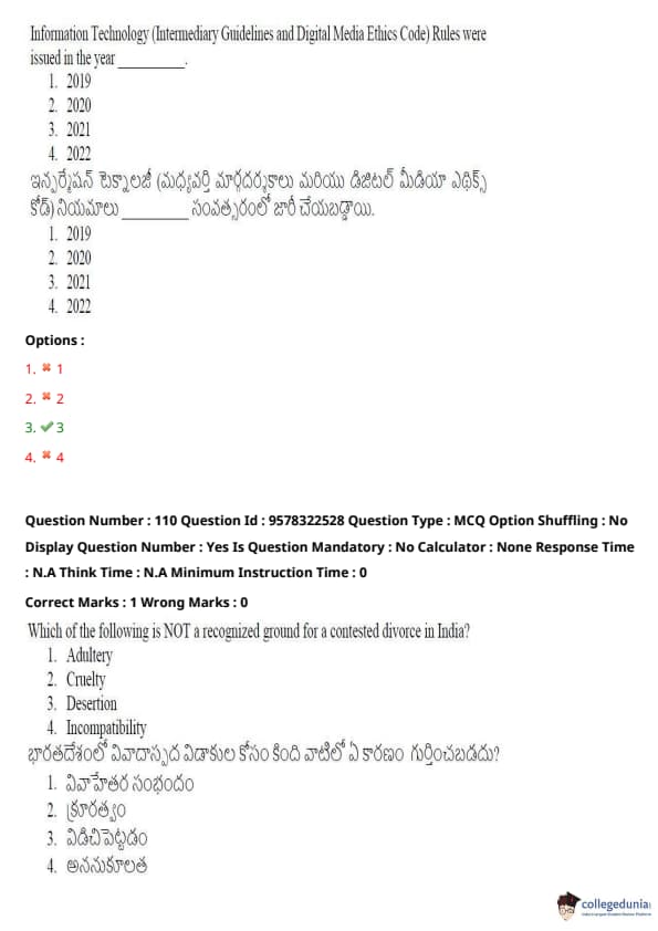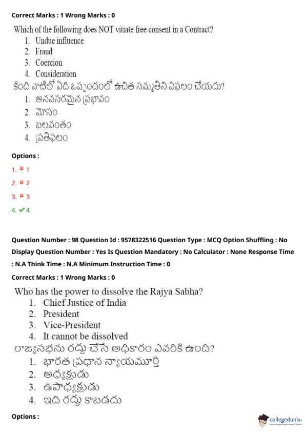 TS LAWCET 2022 LLB (3 years) Question Paper with Answer Key PDF (July 21- Shift 2)