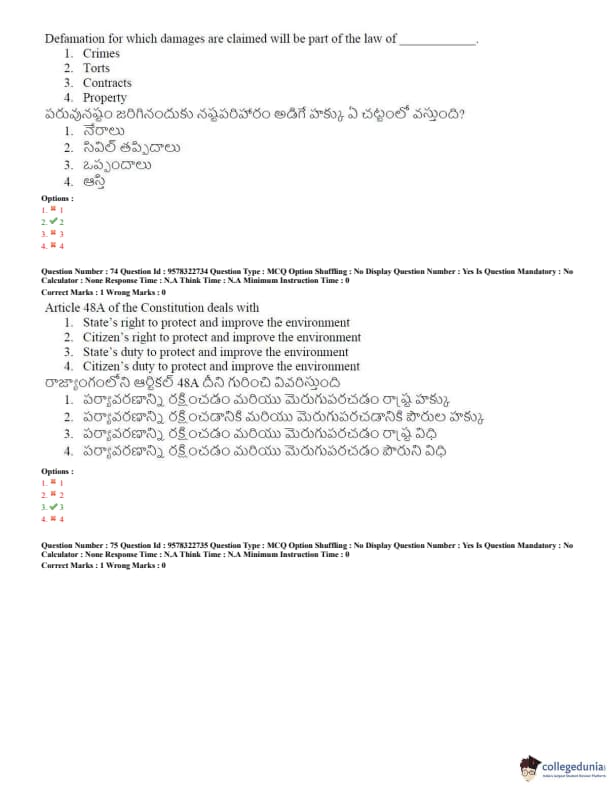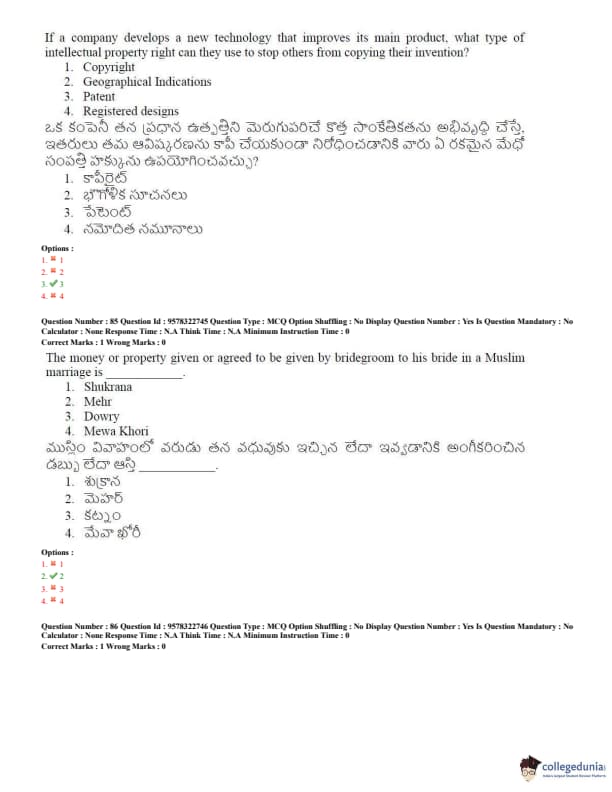 TS LAWCET 2022 LLB (5 years) Question Paper with Answer Key PDF (July 22- Shift 1)