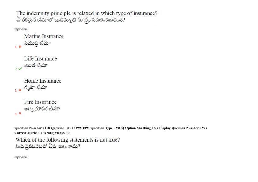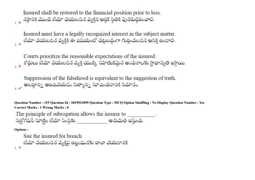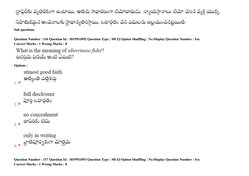 The correct answer is Option (1), as uberrimae fidei refers to acting with "utmost good faith" in insurance contracts.