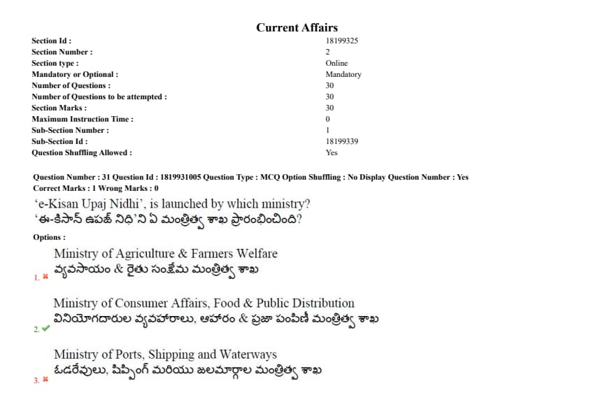 While agriculture-related schemes often fall under the Ministry of Agriculture, this specific initiative focuses on consumer affairs, food supply chain, and distribution — hence, it falls under the purview of the Ministry of Consumer Affairs, Food \& Public Distribution. Quick Tip: Link food grain tracking and distribution projects with the Ministry of Consumer Affairs, not directly with agriculture.