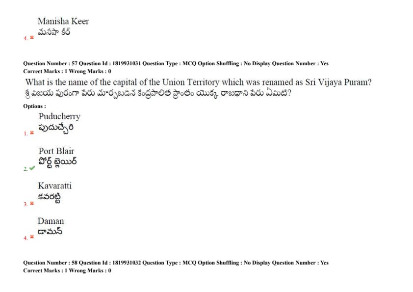 What is the name of the capital of the Union Territory which was renamed as Sri Vijaya Puram?