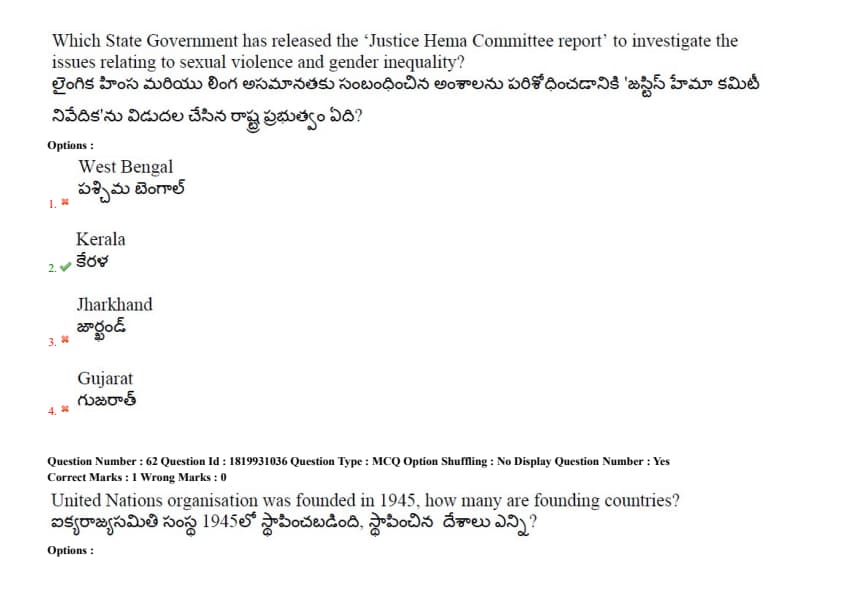 Since Kerala initiated and published the findings of the Hema Committee, the correct answer is Kerala. Quick Tip: Always remember to connect a committee to its objective and the specific government that established it.