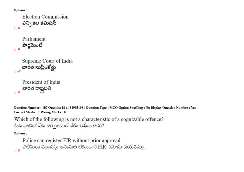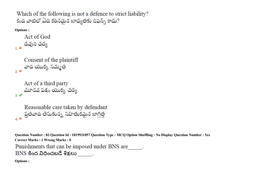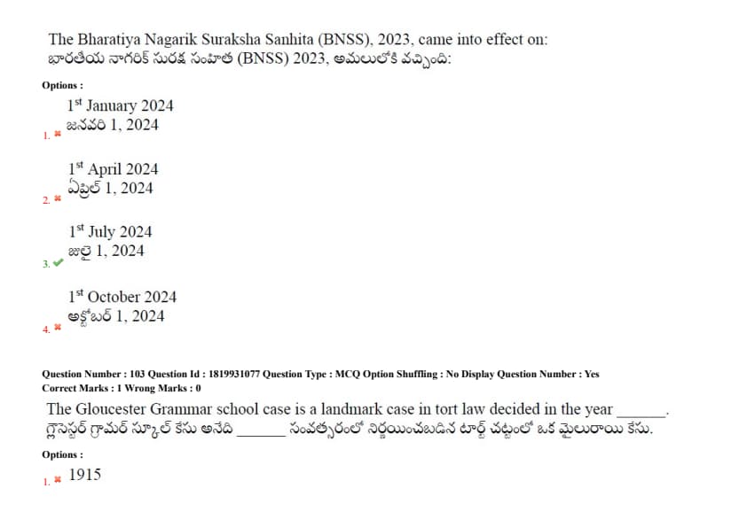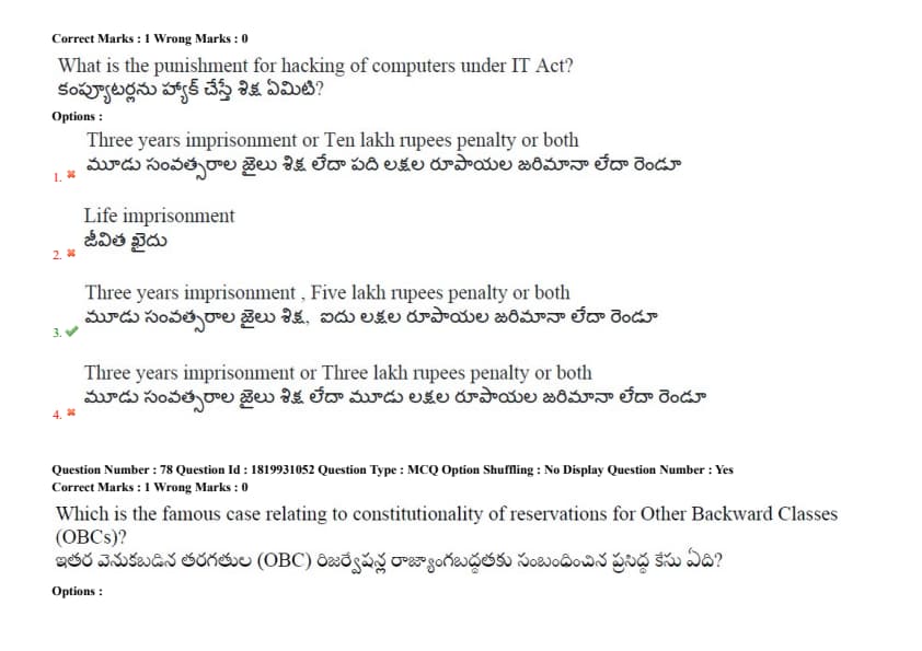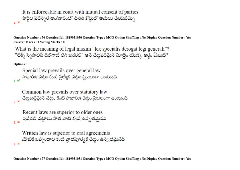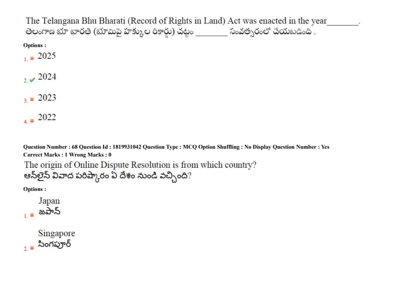 | TS LAWCET 2025 Question Paper with Answer Key | |