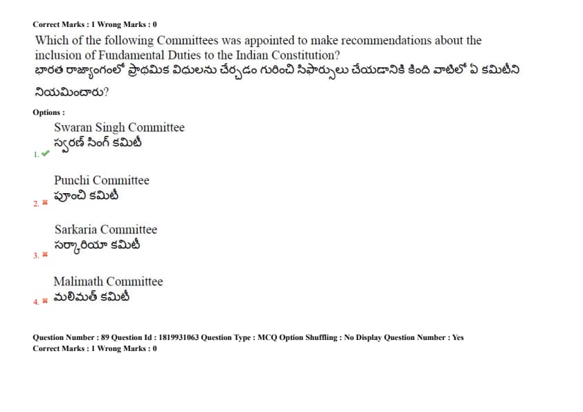 Which of the following Committees was appointed to make recommendations about the inclusion of Fundamental Duties to the Indian Constitution?