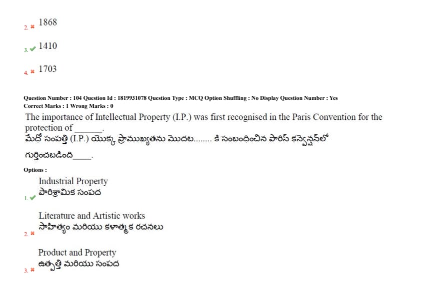 The importance of Intellectual Property (I.P.) was first recognised in the Paris Convention for the protection of __________.
