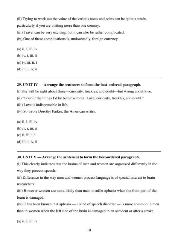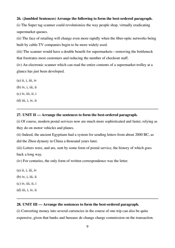 UNIT IV — Arrange the sentences to form the best-ordered paragraph.