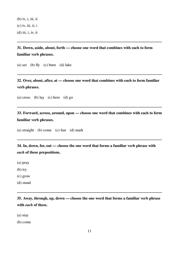Down, aside, about, forth — choose one word that combines with each to form familiar verb phrases.