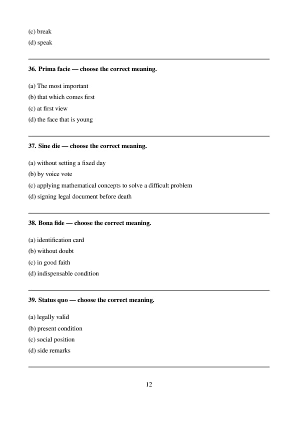 Sine die — choose the correct meaning.