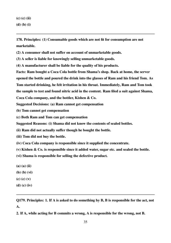 Ram bought a Coca Cola bottle from Shama’s shop. Back at home, the server opened the bottle and poured the drink into the glasses of Ram and his friend Tom. As Tom started drinking, he felt irritation in his throat. Immediately, Ram and Tom took the sample to test and found nitric acid in the content. Ram filed a suit against Shama, Coca Cola company, and the bottler, Kishen \& Co.