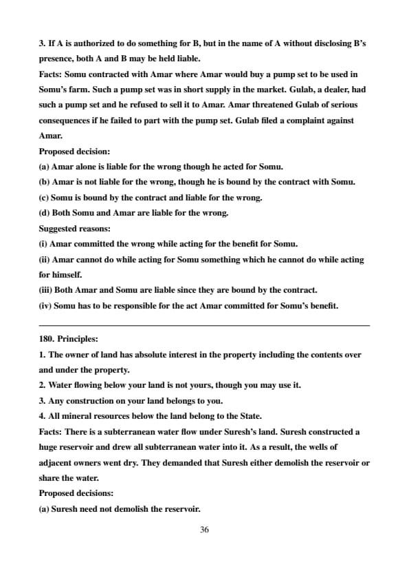 Facts: There is a subterranean water flow under Suresh’s land. Suresh constructed a huge reservoir and drew all subterranean water into it. As a result, the wells of adjacent owners went dry. They demanded that Suresh either demolish the reservoir or share the water.