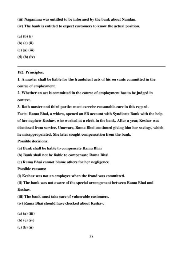 Facts: Rama Bhai, a widow, opened an SB account with Syndicate Bank with the help of her nephew Keshav, who worked as a clerk in the bank. After a year, Keshav was dismissed from service. Unaware, Rama Bhai continued giving him her savings, which he misappropriated. She later sought compensation from the bank.
