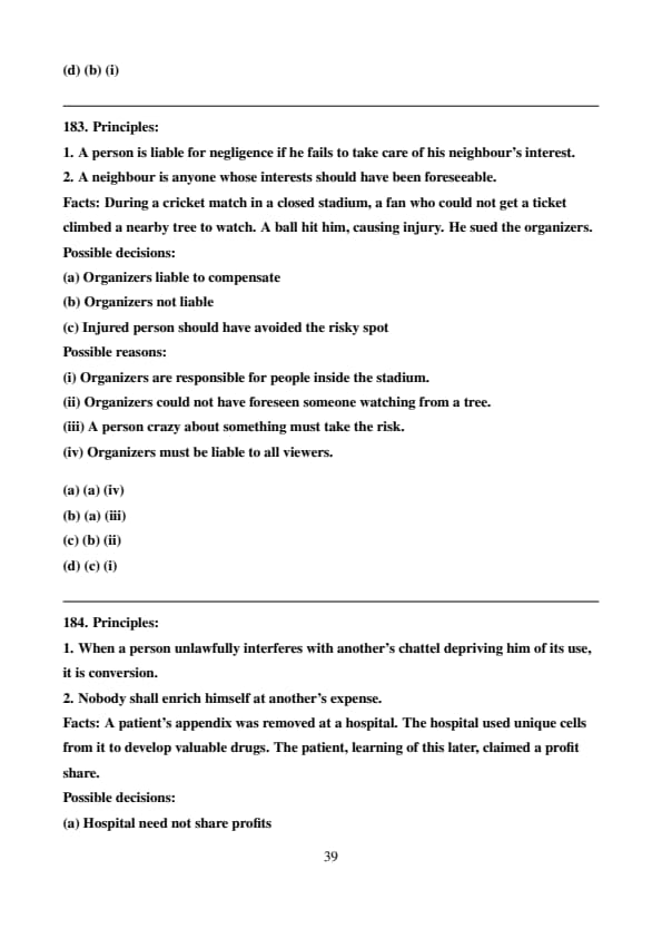 Facts: During a cricket match in a closed stadium, a fan who could not get a ticket climbed a nearby tree to watch. A ball hit him, causing injury. He sued the organizers.