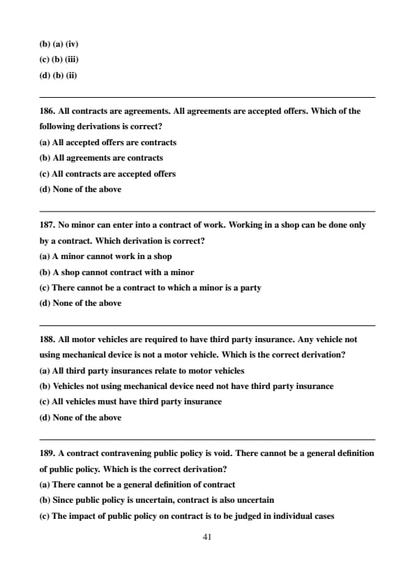 No minor can enter into a contract of work. Working in a shop can be done only by a contract. Which derivation is correct?