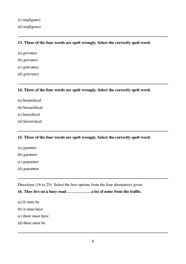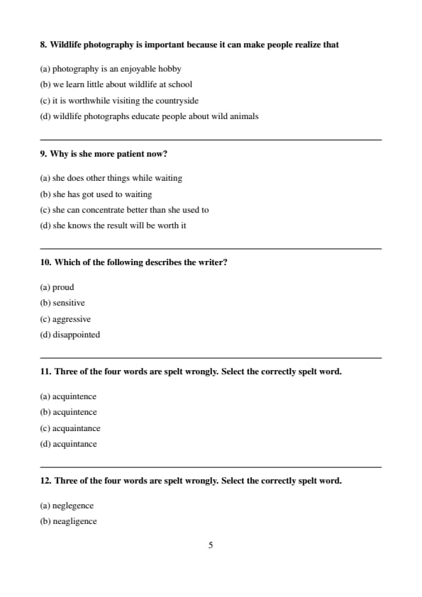 Three of the four words are spelt wrongly. Select the correctly spelt word.
