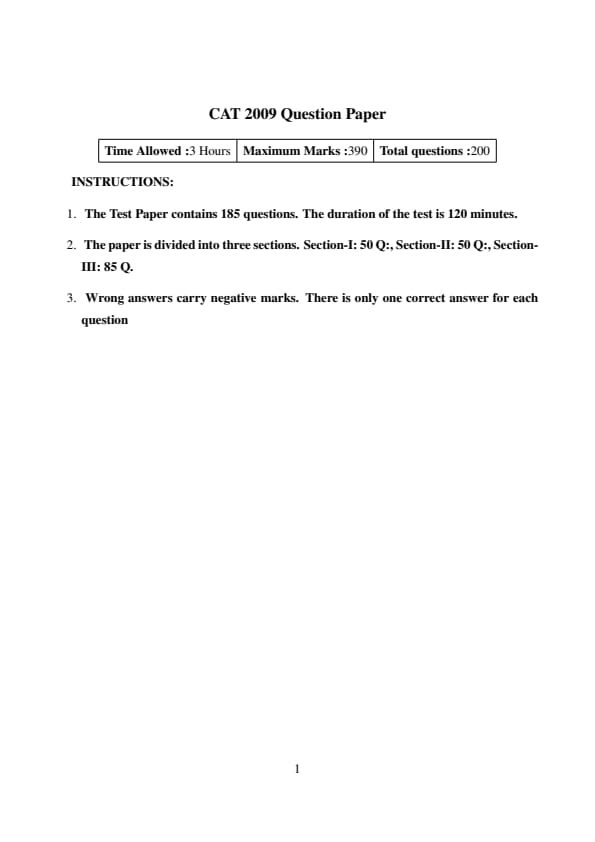 CLAT 2009 Common Question paper with answer key pdf conducted on May 31, 2009 in Afternoon Session 3:00 PM to 5:00 PM is available for download. The exam was successfully organized by Rajiv Gandhi National Law University. In terms of difficulty level, CLAT was of Easy to Moderate level. The question paper comprised a total of 200 questions divided among five sections.