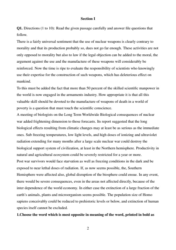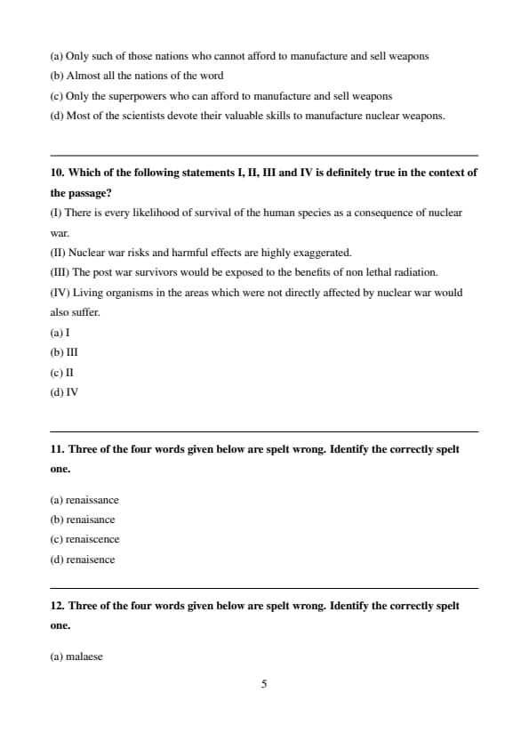 Directions (1 to 10): Read the given passage carefully and answer file questions that follow.