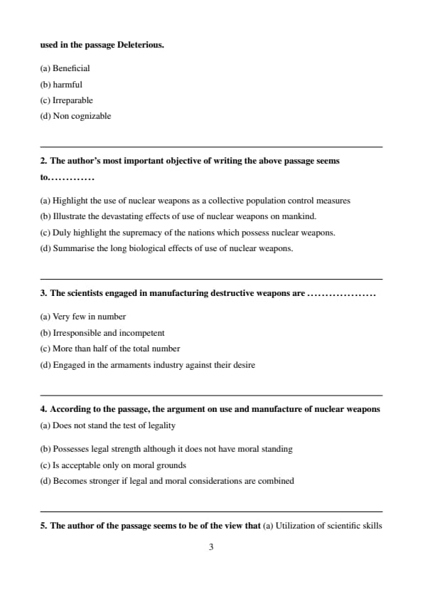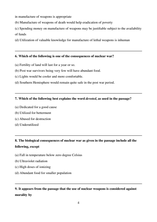 Read the passage's central theme — it repeatedly emphasises moral, legal and especially biological/ecological consequences of nuclear weapons.