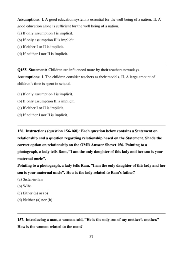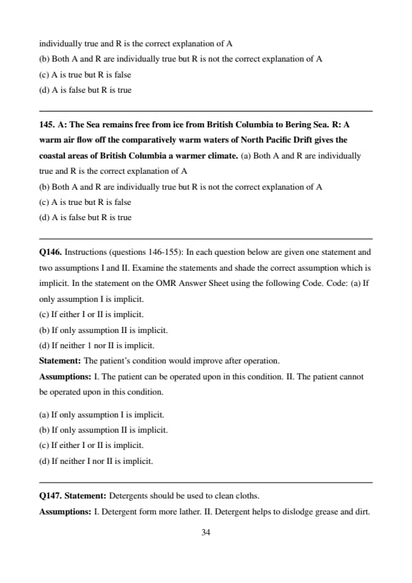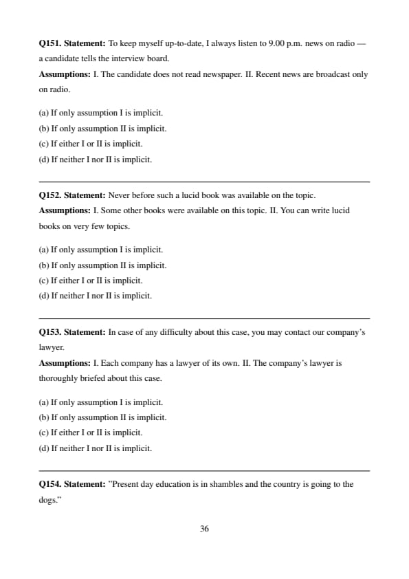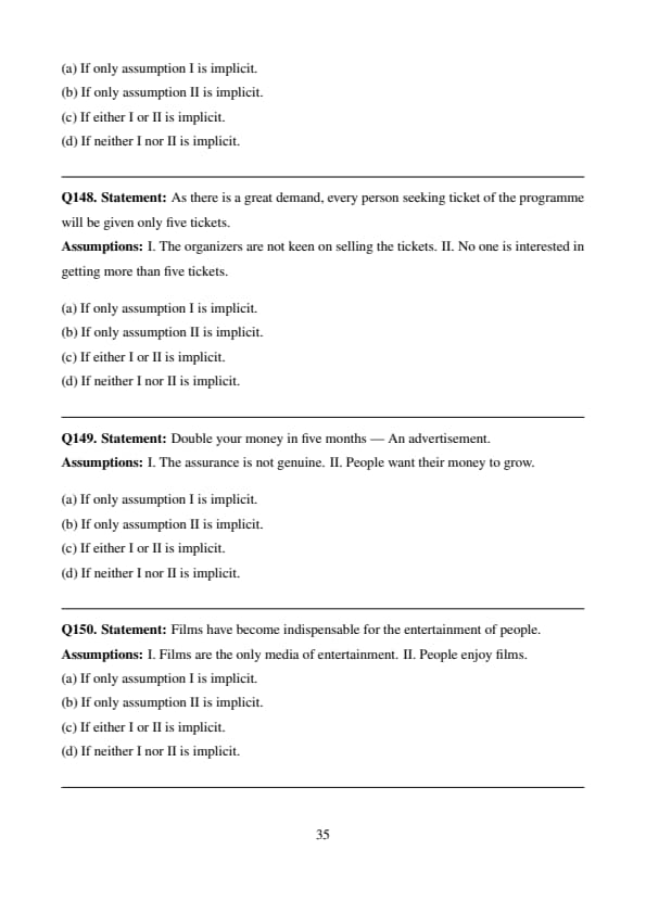Hence the only definitely true statement is (IV), so select (d). Quick Tip: For multi-statement items, check each statement against explicit lines in the passage — mark true/false and pick the option containing the definitely true statement(s).
