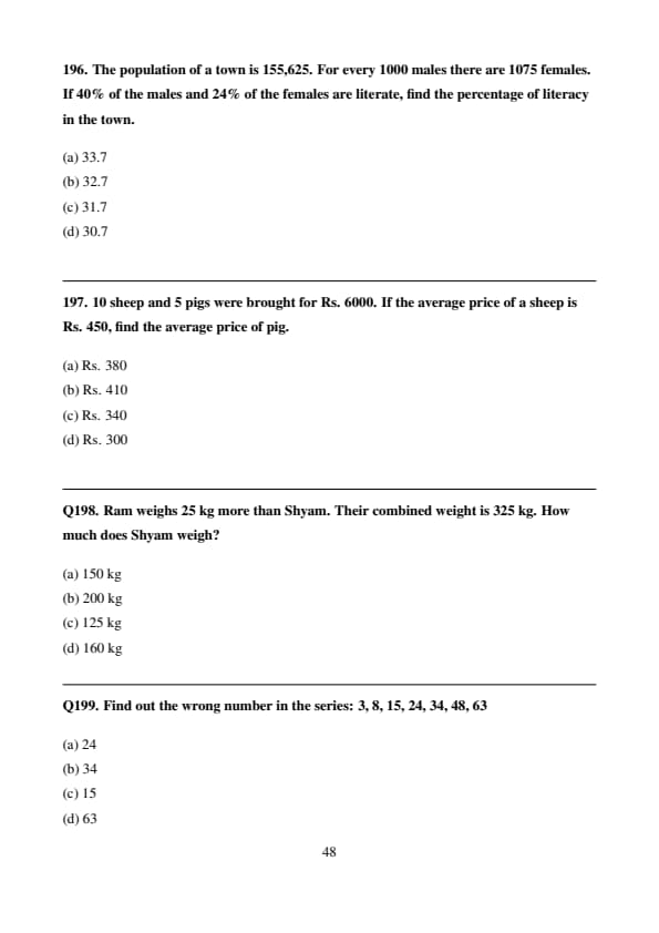 Hence the correct answer is (c) 31.7% (approximately). Quick Tip: Use ratio parts to split the population, then apply literacy percentages to each subgroup to get the overall rate.