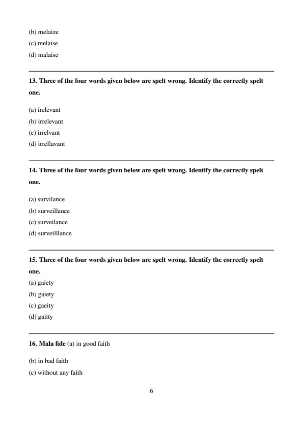 Thus, (d) is the correct spelling. Quick Tip: Break tricky spellings into syllables: \textit{ma-laise helps remember the correct sequence.
