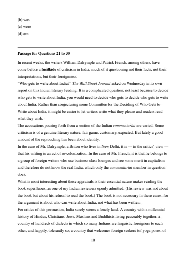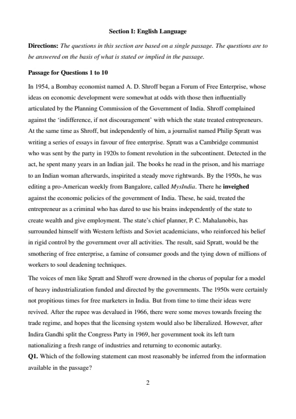 Passage for Questions 1 to 10