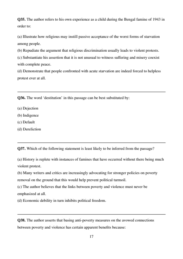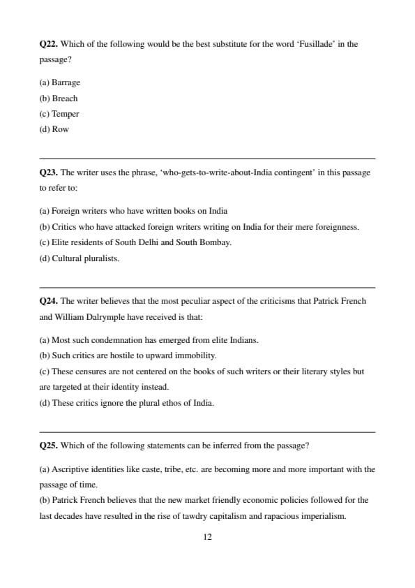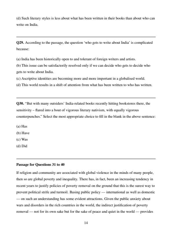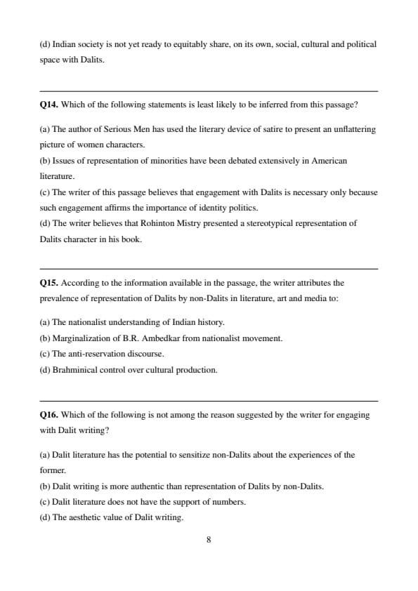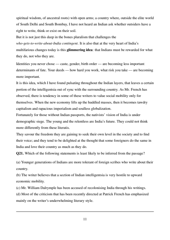 % Final Answer \[ \boxed{(a) \] Quick Tip: When solving “least likely to be inferred” questions, identify the option that contradicts or misrepresents the passage content.