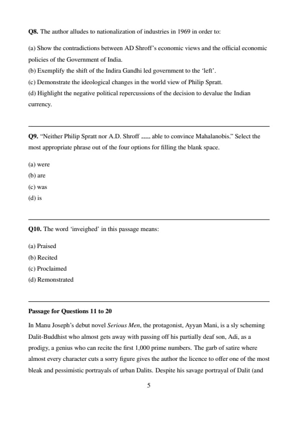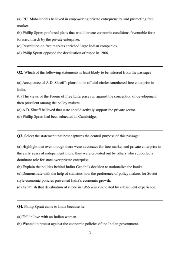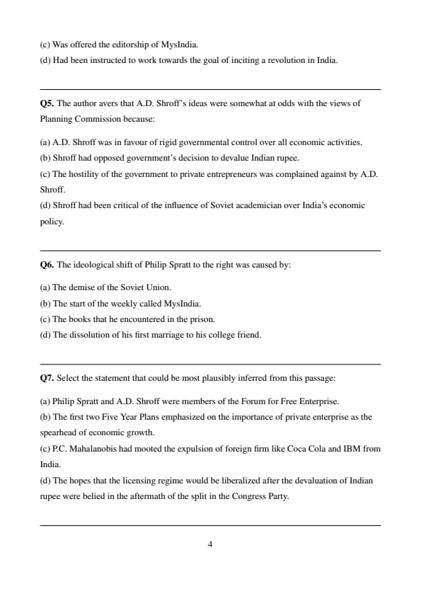 (d) Incorrect – The passage does not mention Spratt’s view on rupee devaluation.