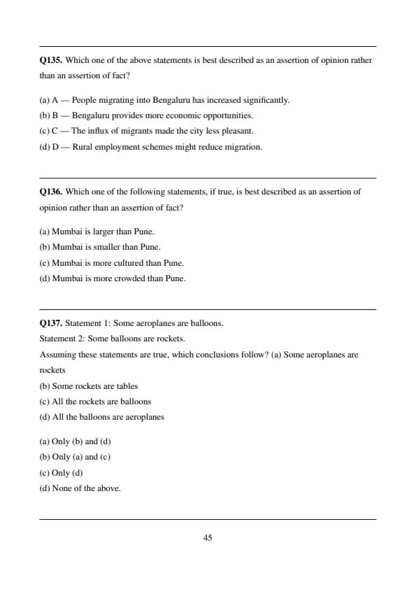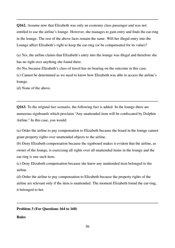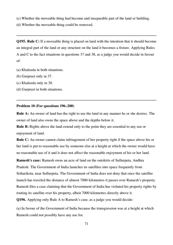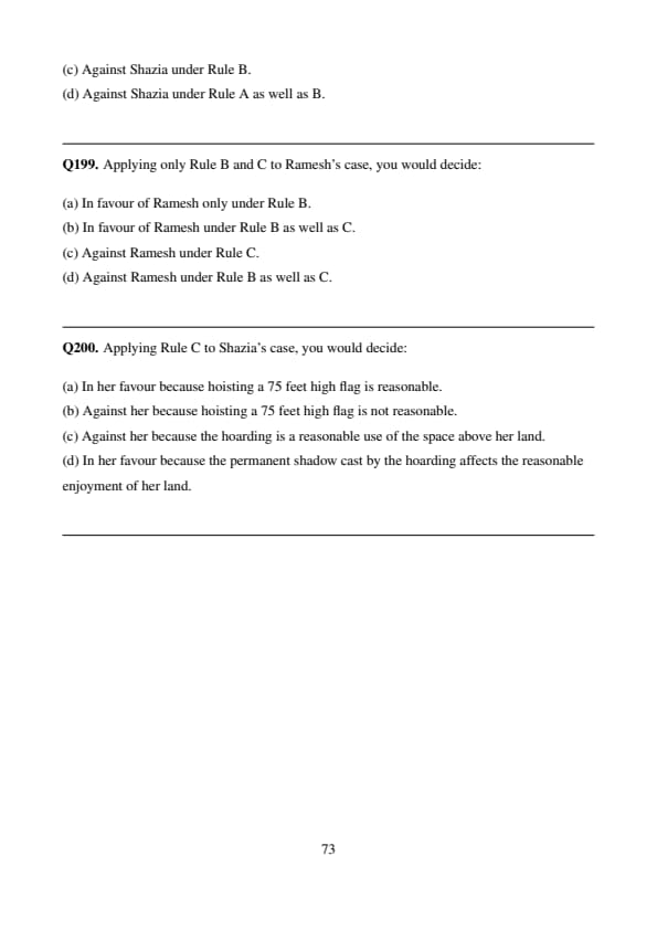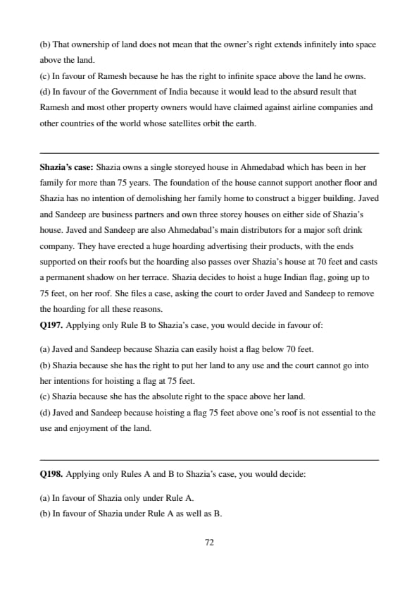 % Final Answer \[ \boxed{(d)} \] Quick Tip: Under Rule B, rights above land are limited to what is essential for reasonable use or enjoyment. Anything beyond that — like symbolic acts — cannot override others’ lawful use of high space.