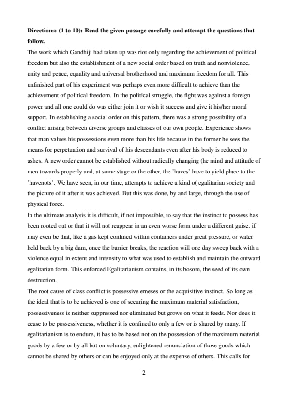 In conclusion, the establishment of an egalitarian society was Gandhi’s ultimate, yet unfulfilled, social experiment. Quick Tip: Focus on the concrete societal outcomes when identifying “unfinished” historical missions — in this case, the realization of a just and equal society.