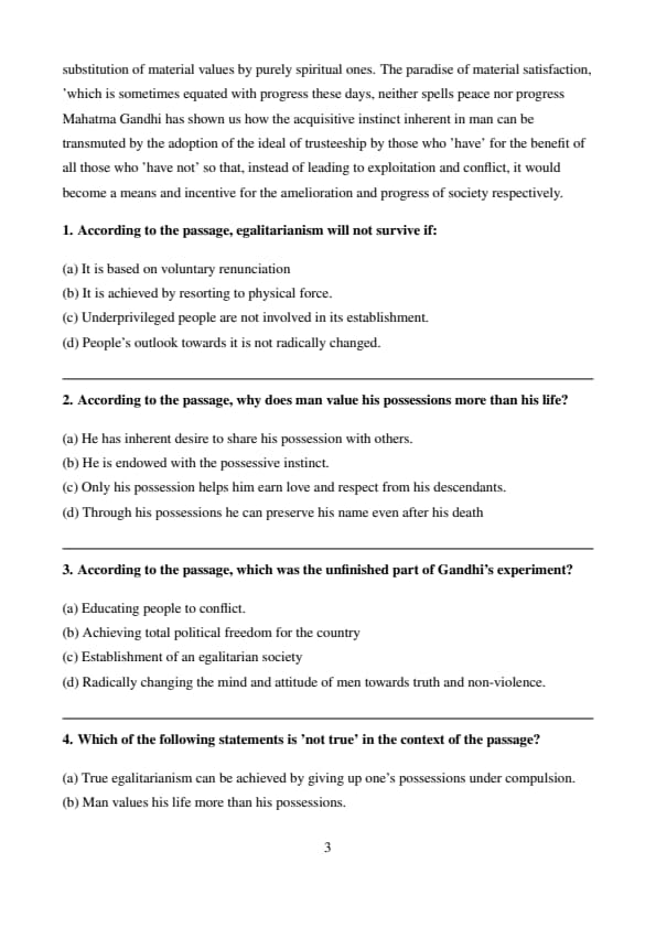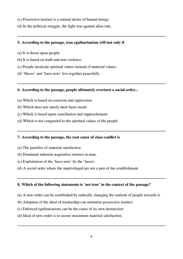 Thus, option (d) directly addresses the sustainability of egalitarianism and is the correct choice. Quick Tip: When a question focuses on the “survival” of an ideology or system, look for the option that reflects long-term acceptance and societal mindset change.