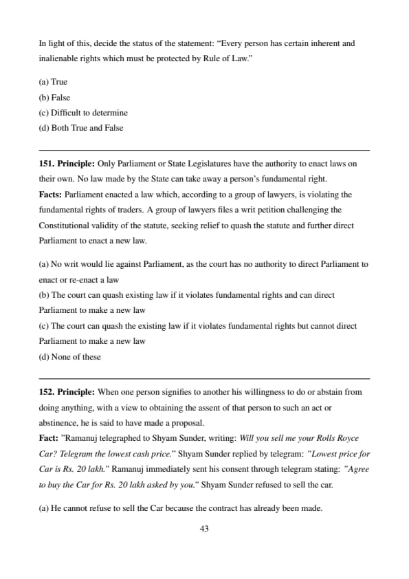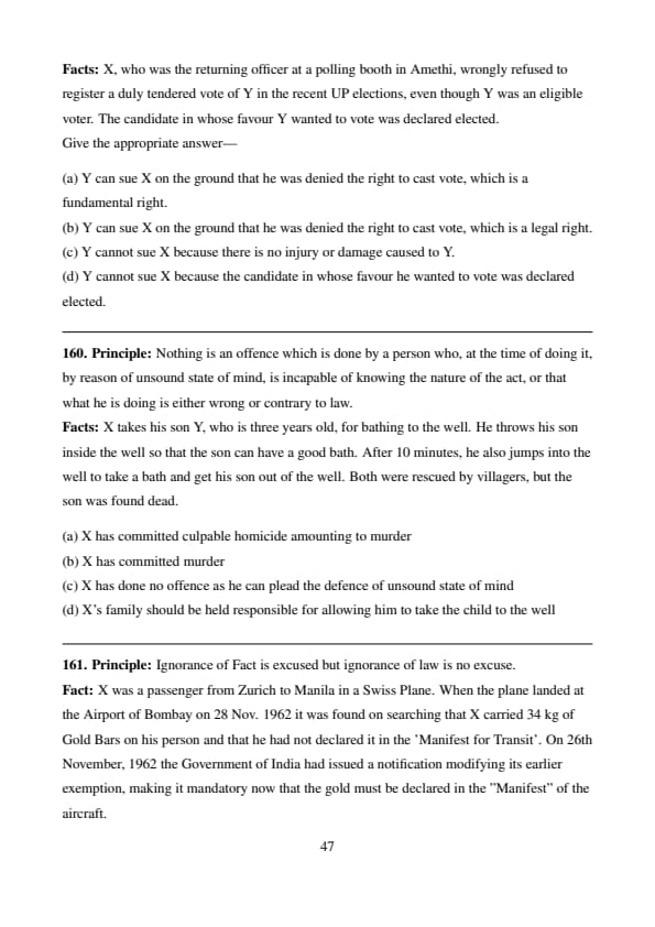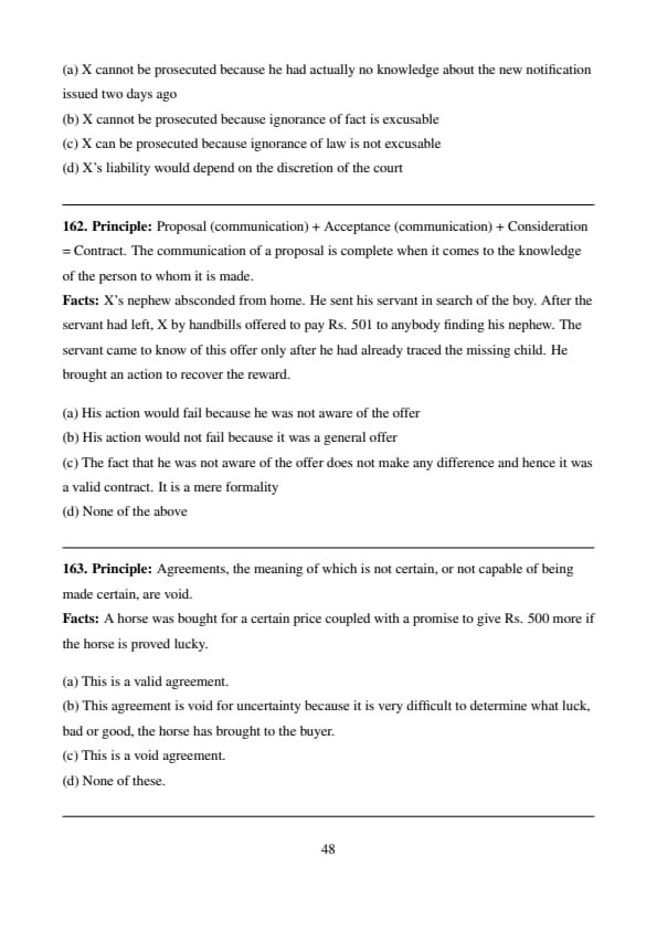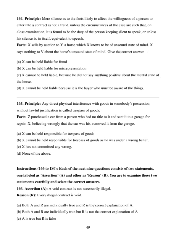\[ \boxed{Y is liable to pay the value of sweets to X.} \] Quick Tip: Quasi-contracts create obligations similar to contracts to prevent unjust enrichment — even without a formal agreement.