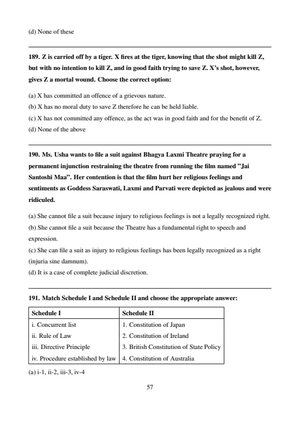 Match the Schedule I and II and choose the appropriate answer —