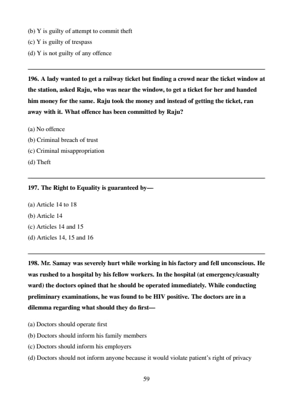 \[ \boxed{Doctors must operate immediately to save the patient’s life.} \] Quick Tip: In emergencies, life-saving treatment takes priority over all other considerations — including consent and disclosure — unless the law mandates otherwise.